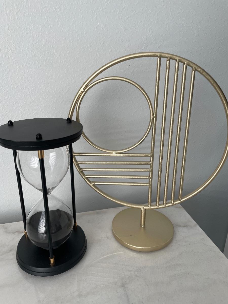 Sand Timer and gold circle decor