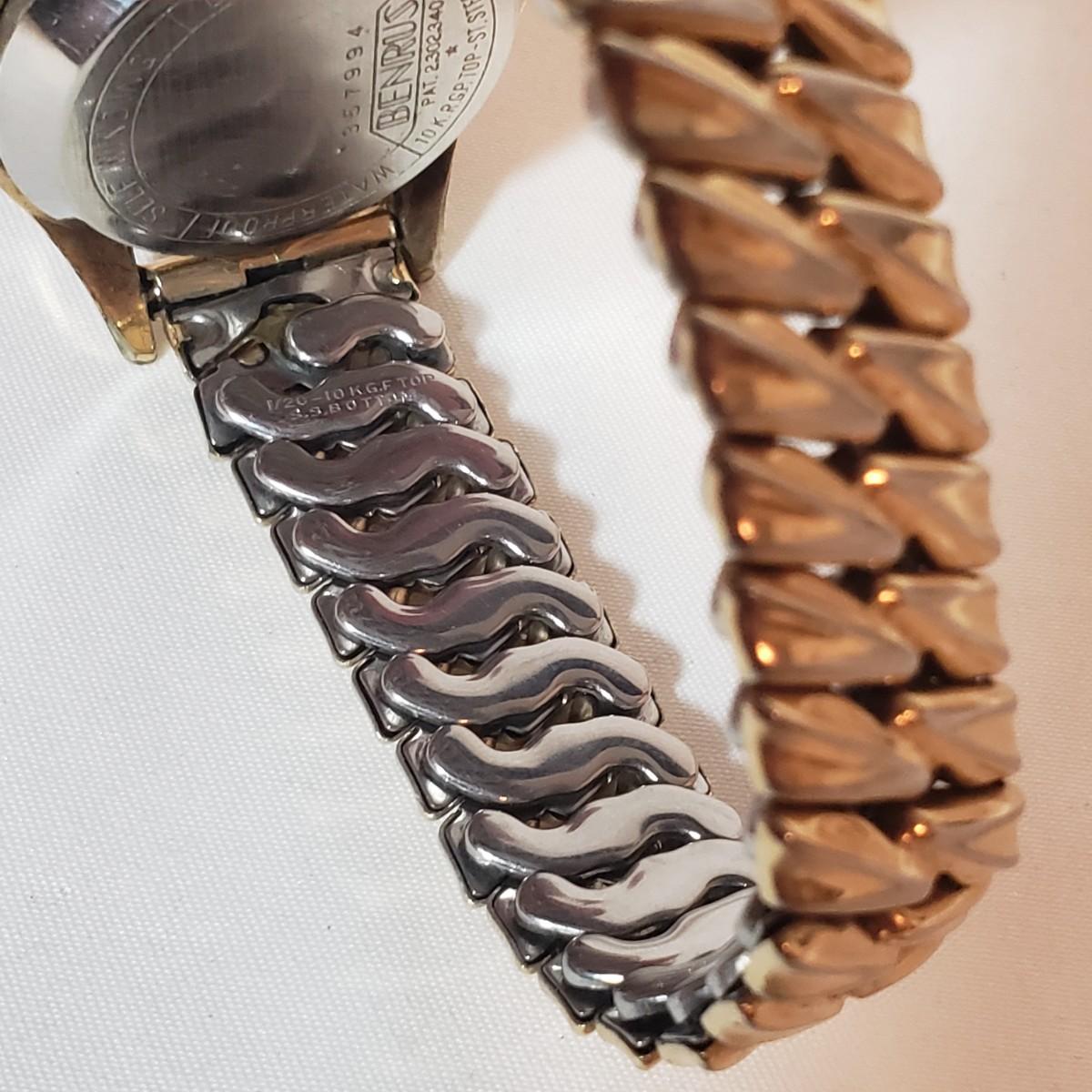 This three piece watch lot features a Times Expedition, a gold colored Benrus and a silver colored Baylor. The Timex has a leather band and a water resistant band and face. The length measures 9". The Baylor and the Benrus both wind up, have elastic bands and work! The Timex was not tested with a new battery.