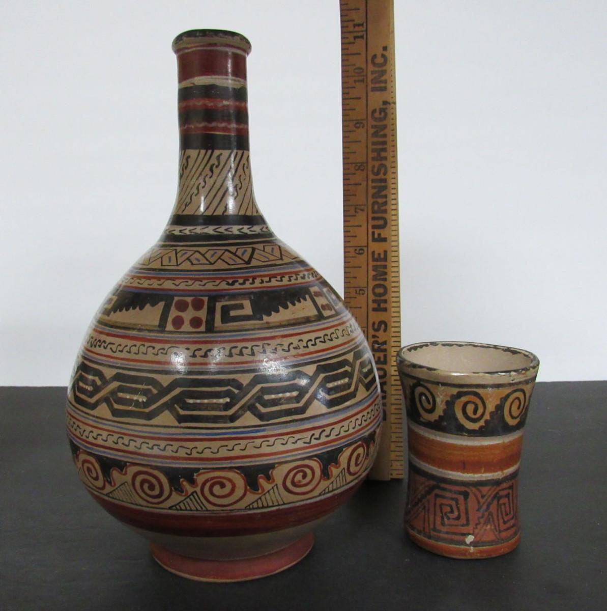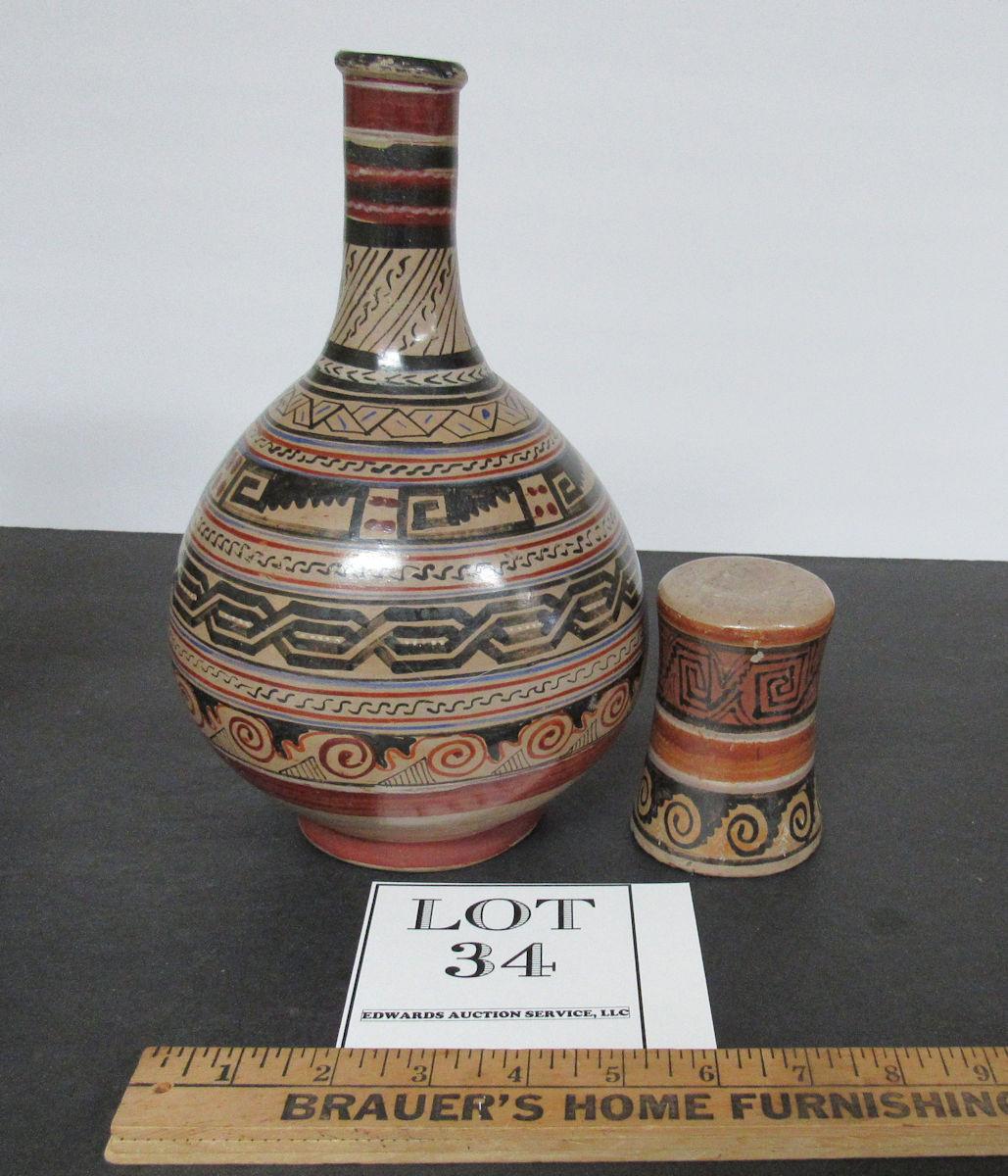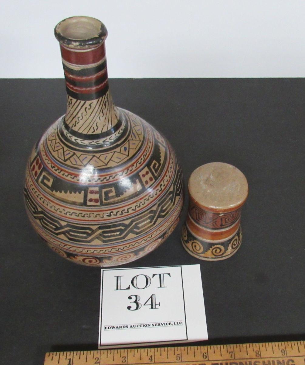 Vintage Signed Timoteo Solis Wine or Water Carafe With Tumbler Tumble Up Set El Salvadore #1