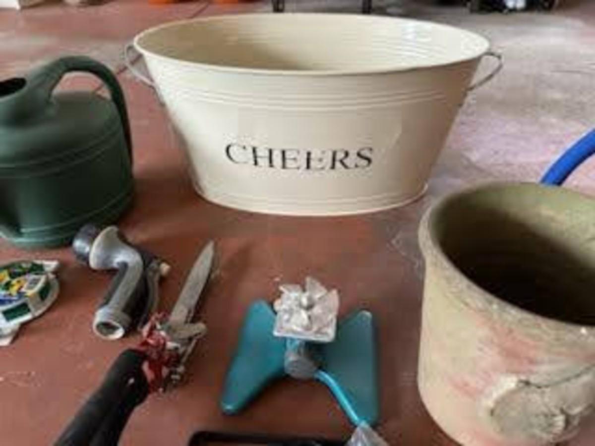 TIN BUCKET, SPRINKLER, SPRAYER, WATERING CAN AND WATER MISTER