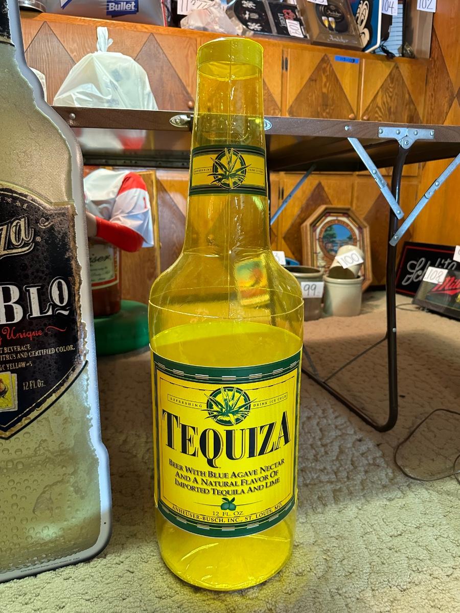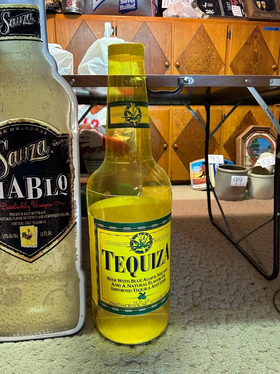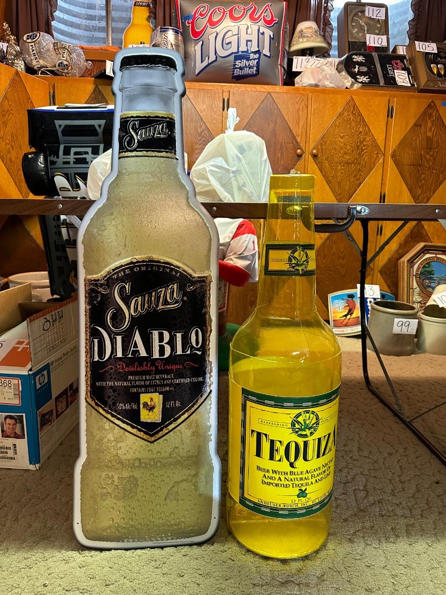 TIN DIABLO SIGN AND AN INFLATABLE TEQUIZA BOTTLE