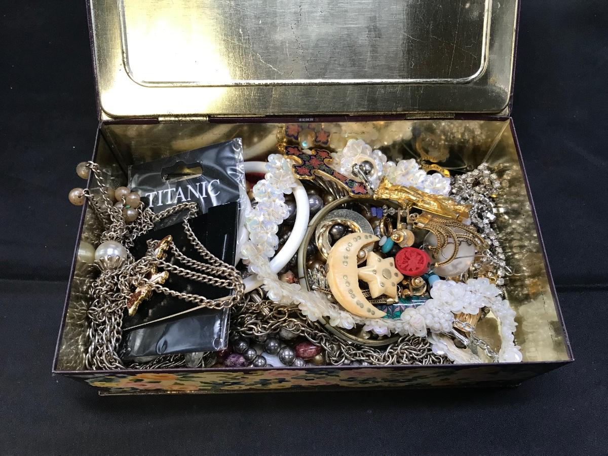 Quality vintage tin full of estate jewelry