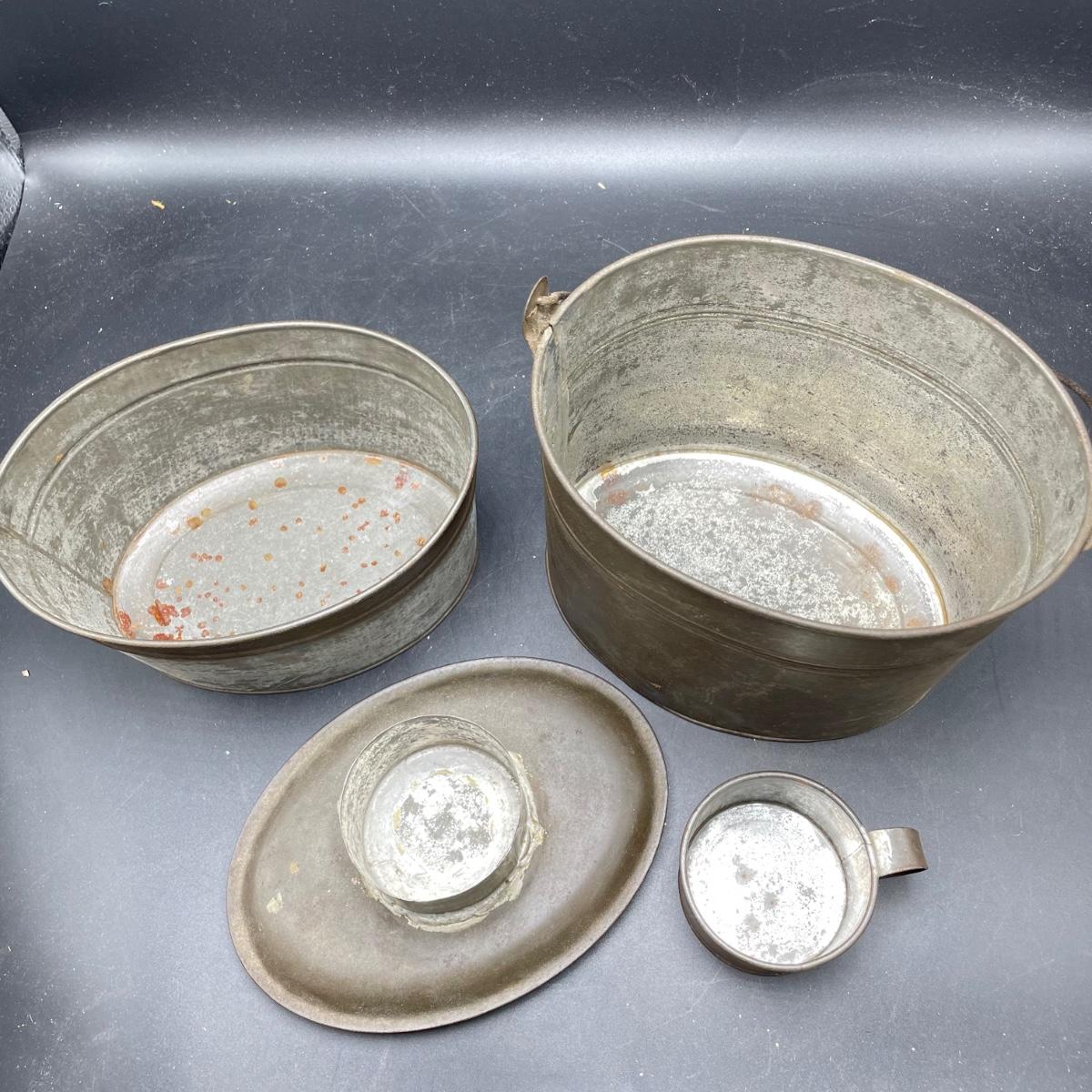 Four nesting tins reaching back to the last century as a coal minor’s layered lunch tote. See images. Shipping available.