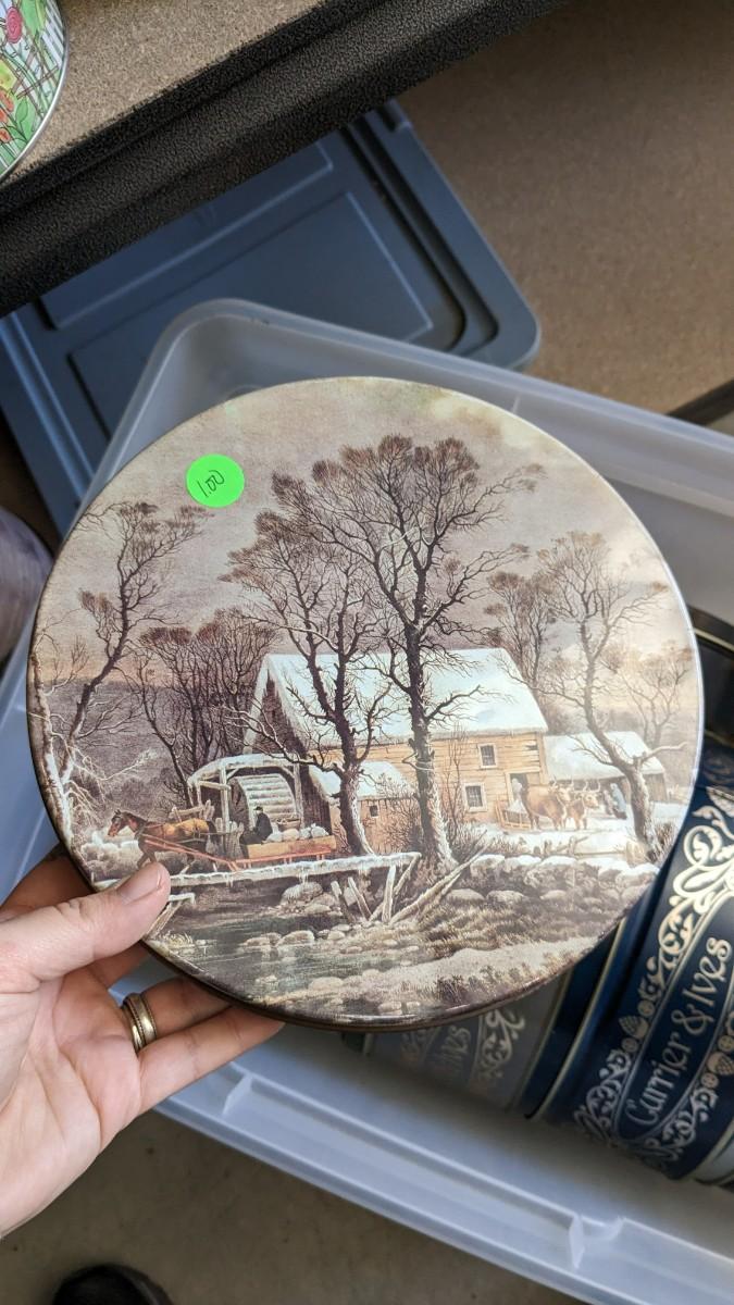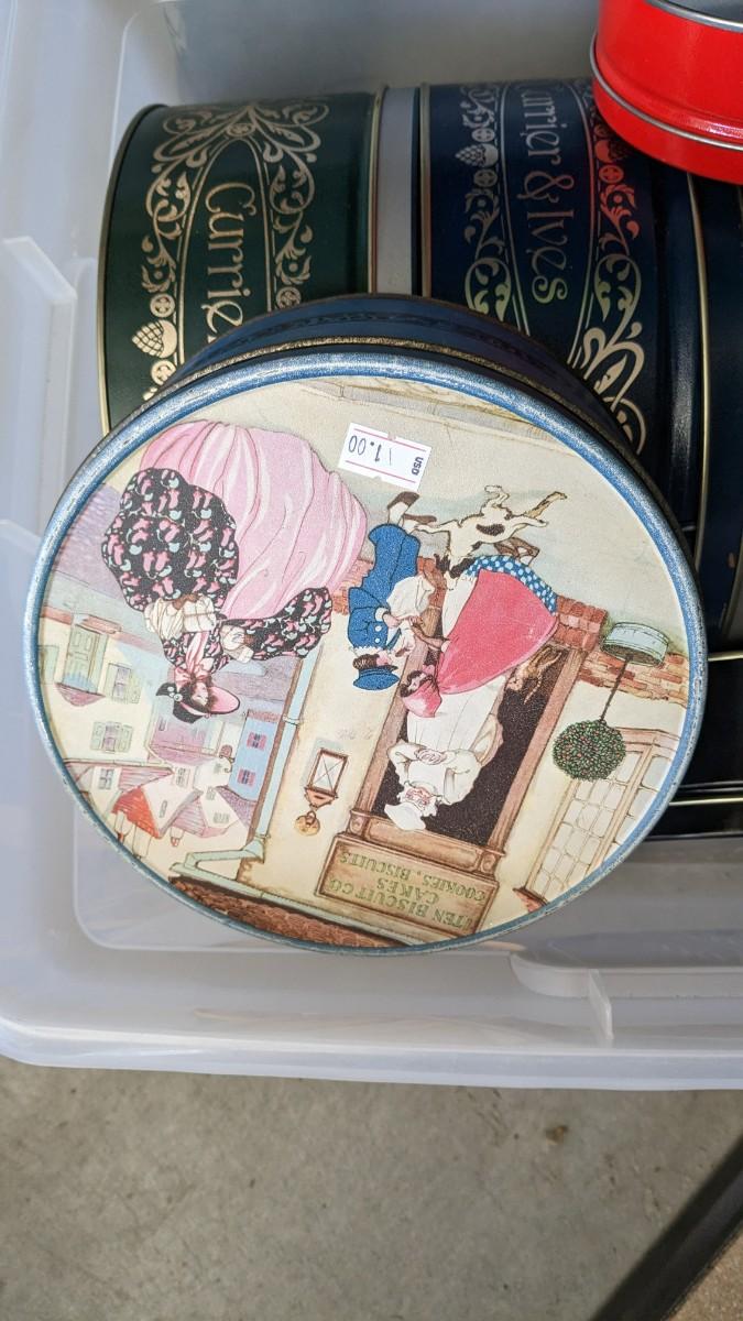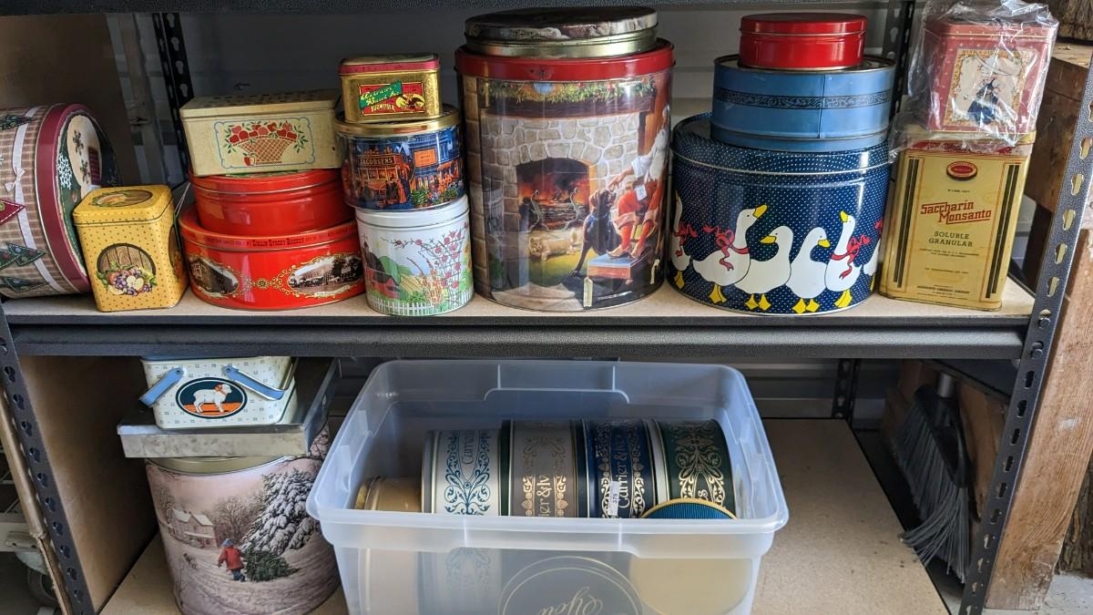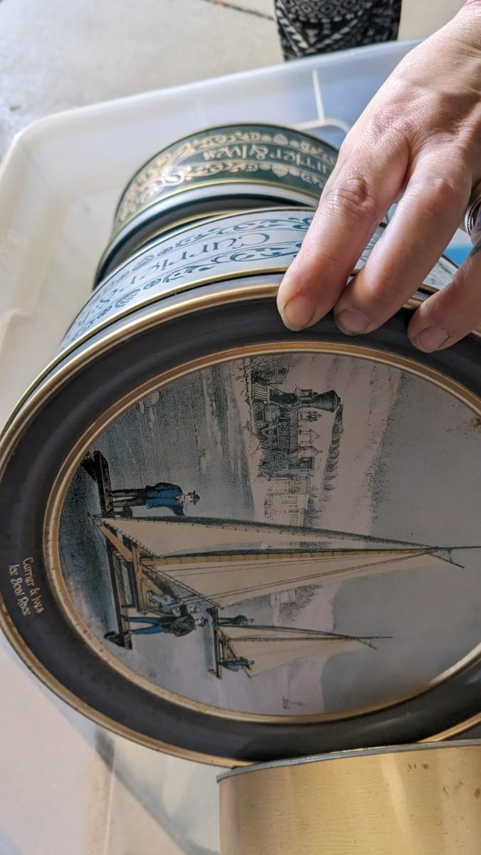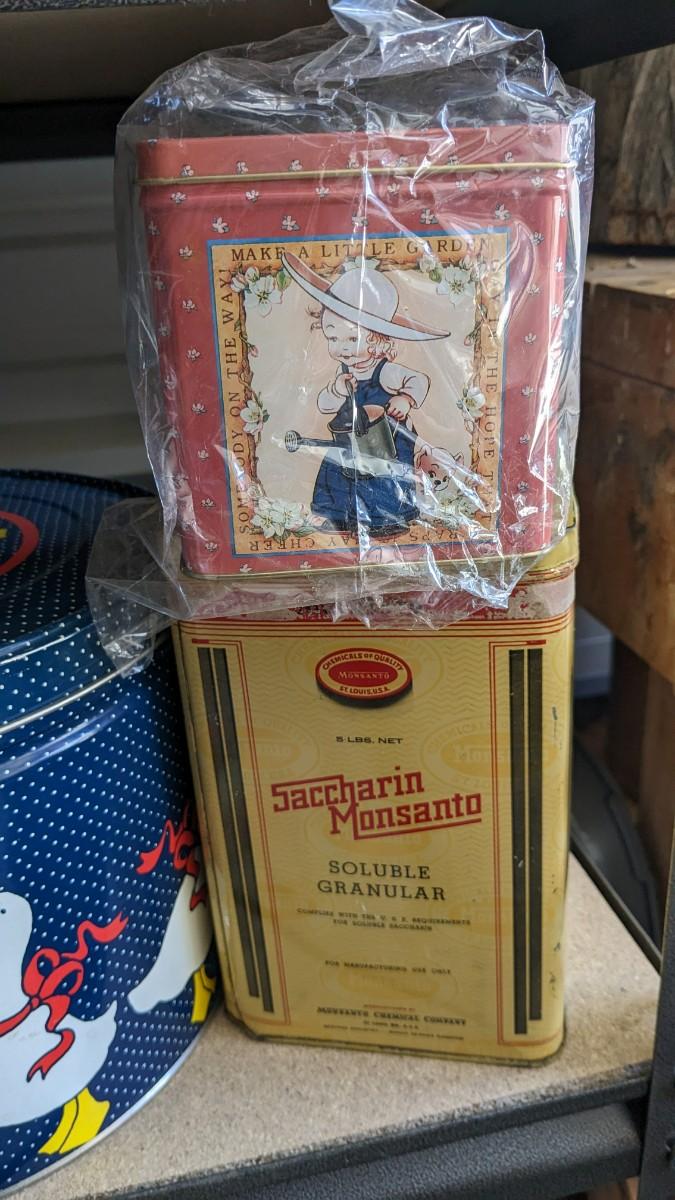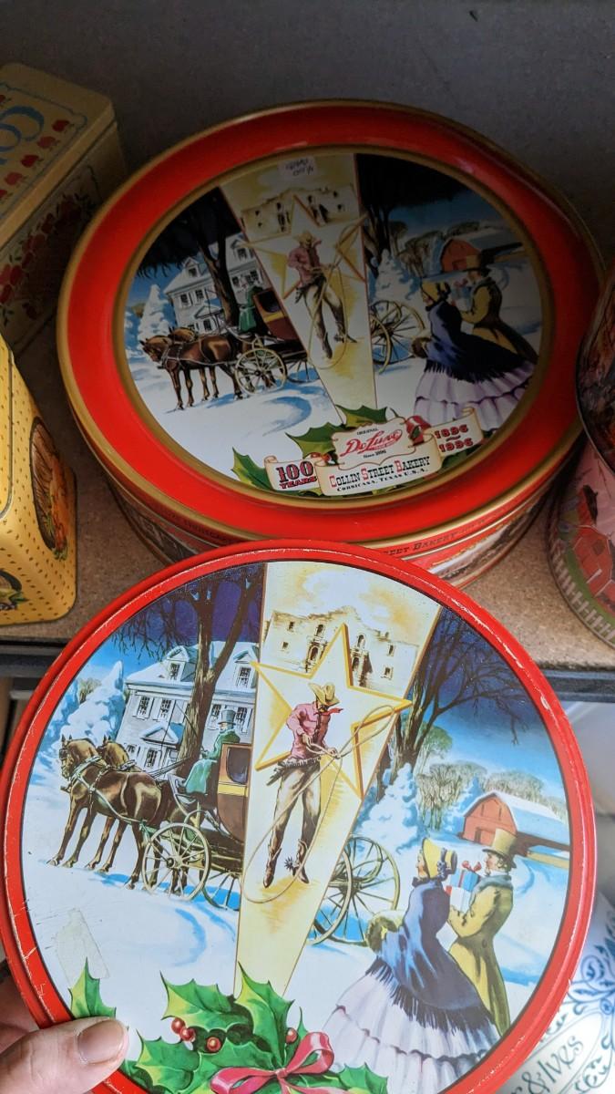 a great assortment of tin containers from varying decades. No shipping. 2604