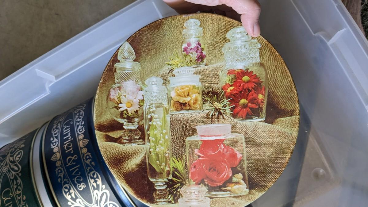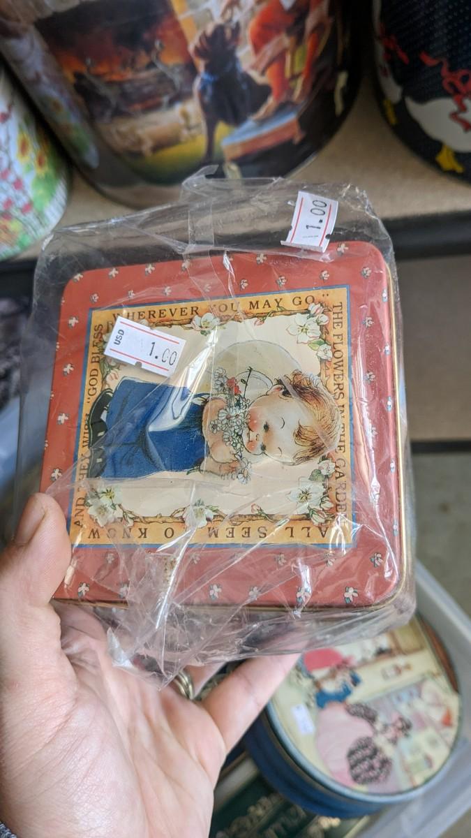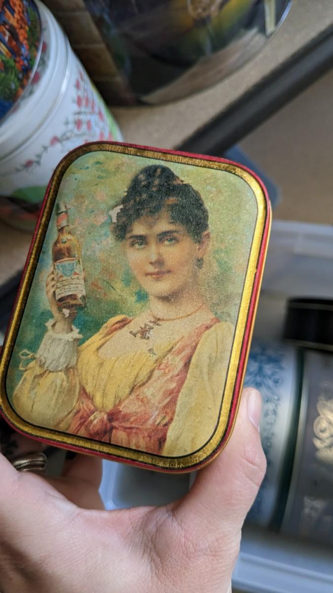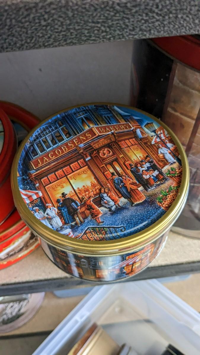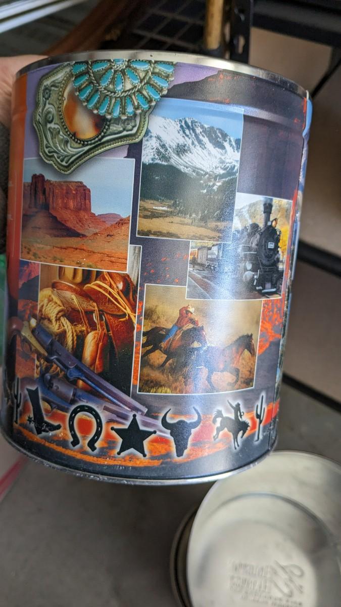 a great assortment of tin containers from varying decades. No shipping. 2604