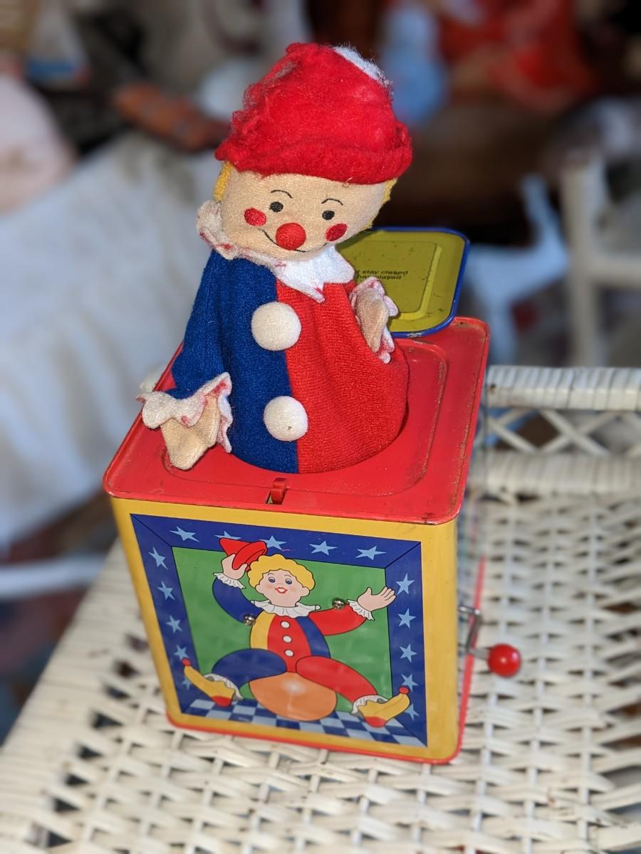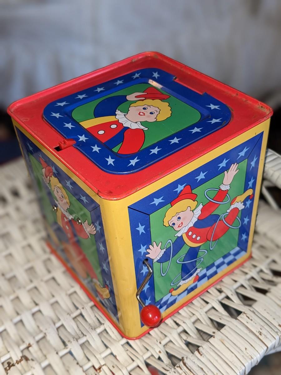 TIN METAL CLOWN JACK-IN-THE-BOX CRANK MUSICAL