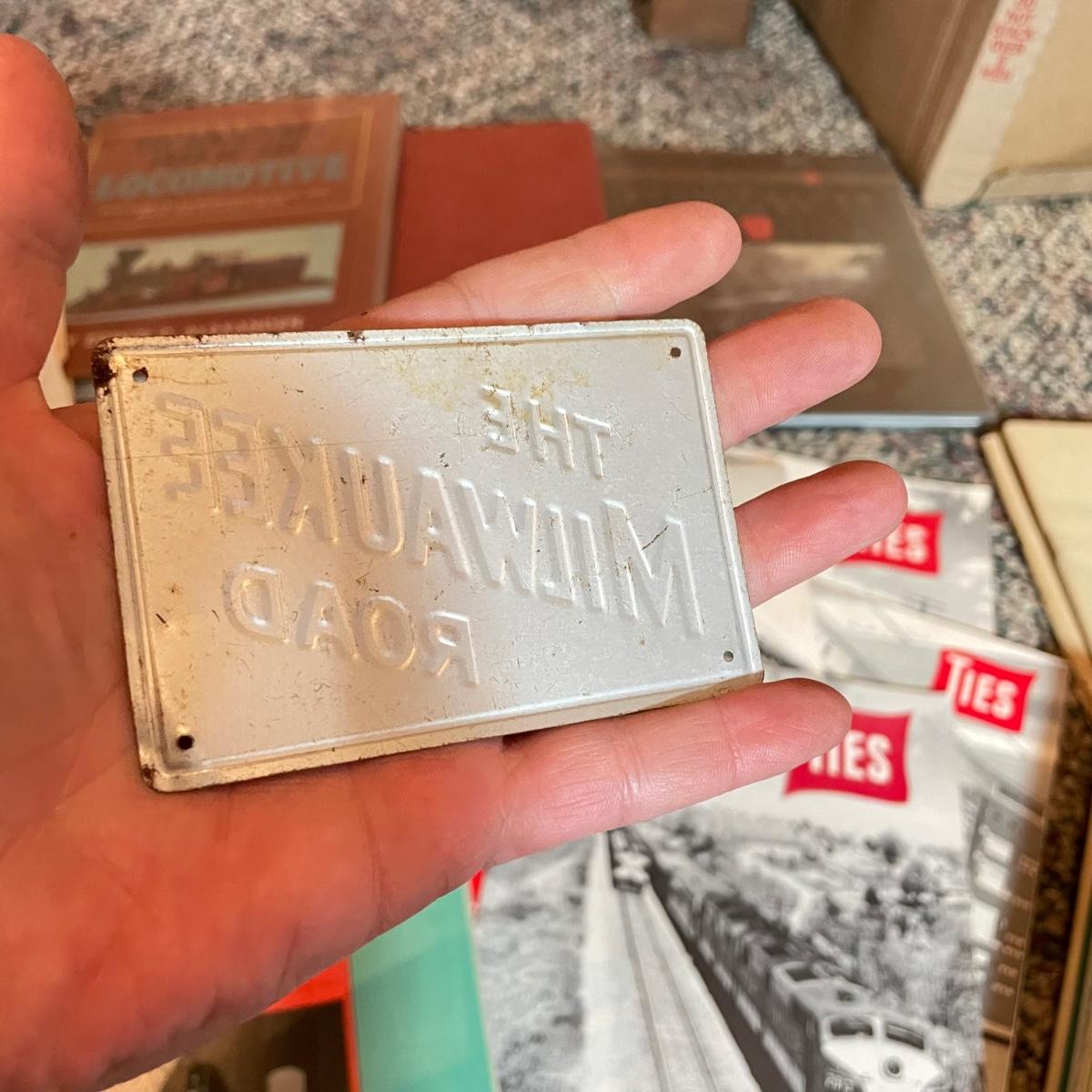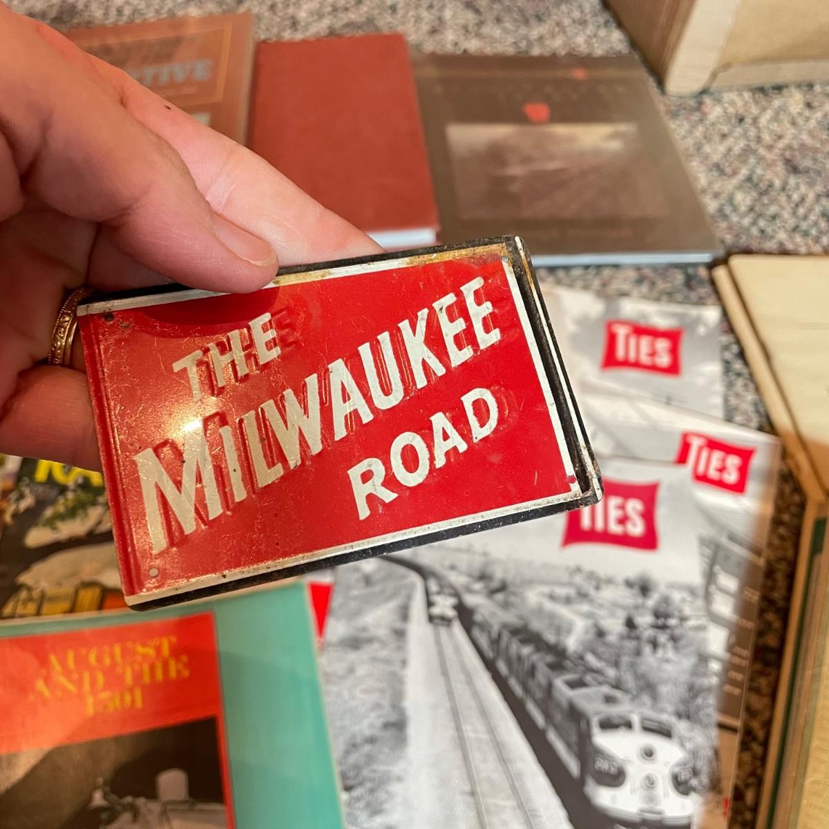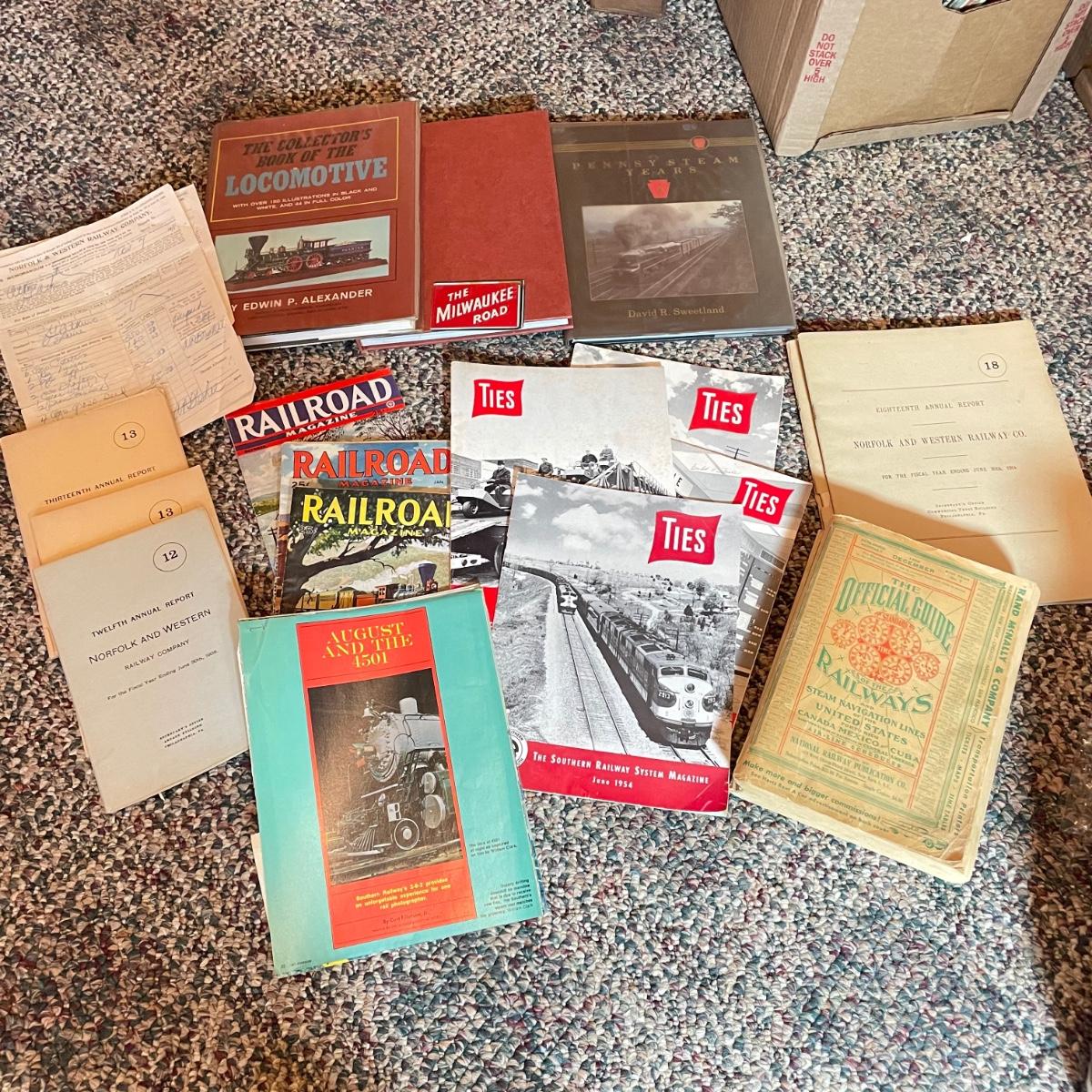A small 2.25” x 3.5” Milwaukee Road tin advertisement along with three train reference books, two with non-stick protective plastic covering the book covers. Lot also includes a Rand McNally 1958 annual Railroad guide, two Norfolk and Western annual fiscal reports, four Ties and three Railroad magazines. See images. Shipping available.
