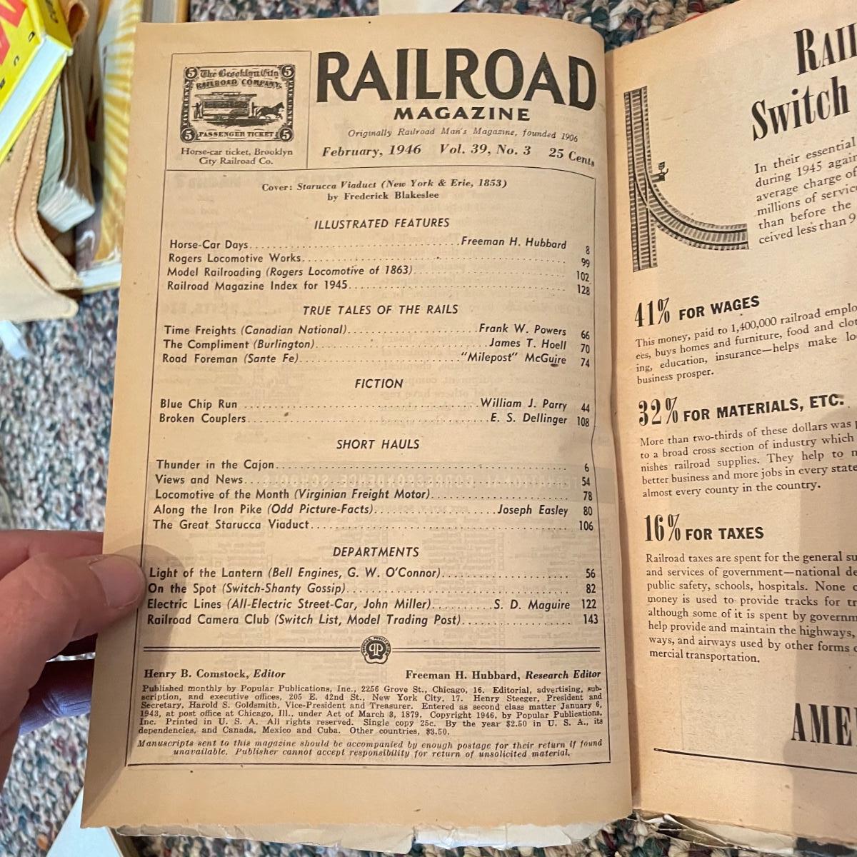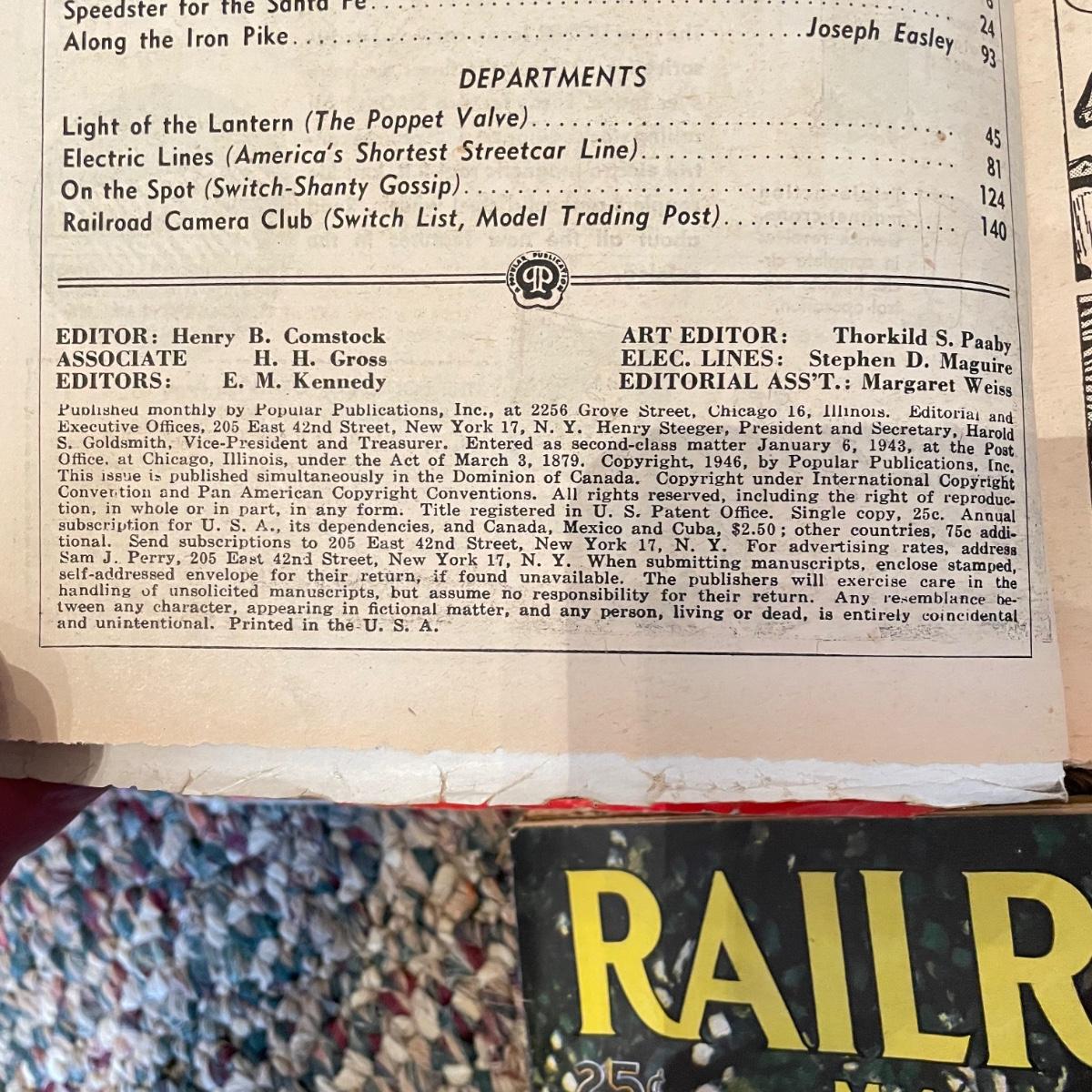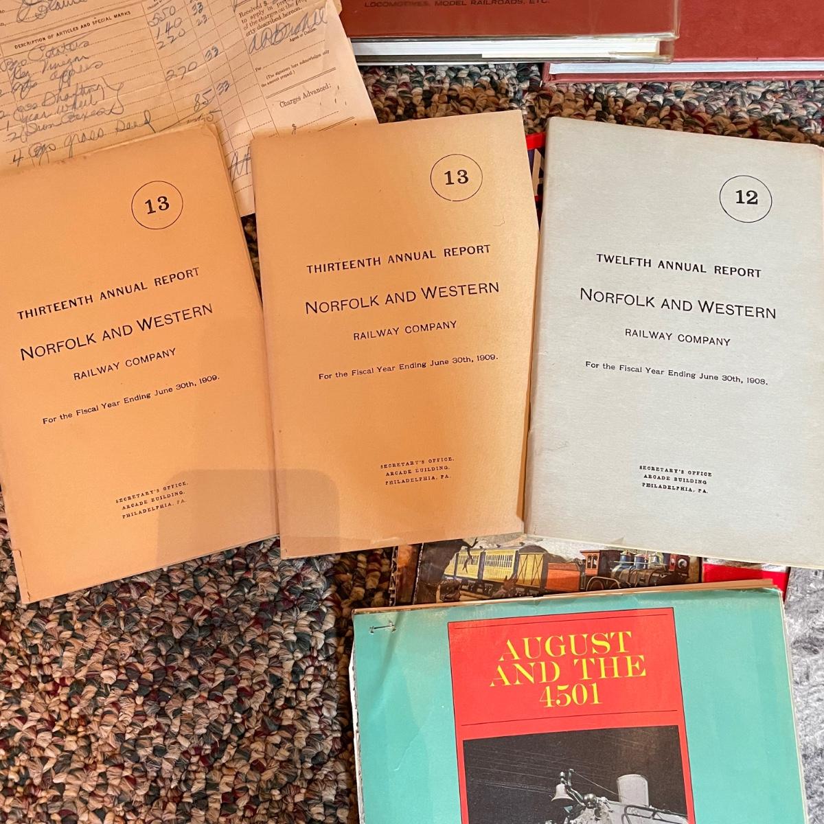 A small 2.25” x 3.5” Milwaukee Road tin advertisement along with three train reference books, two with non-stick protective plastic covering the book covers. Lot also includes a Rand McNally 1958 annual Railroad guide, two Norfolk and Western annual fiscal reports, four Ties and three Railroad magazines. See images. Shipping available.