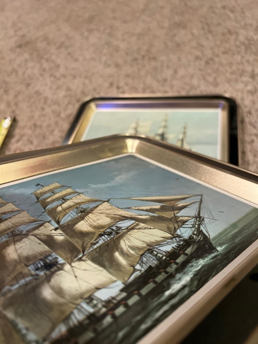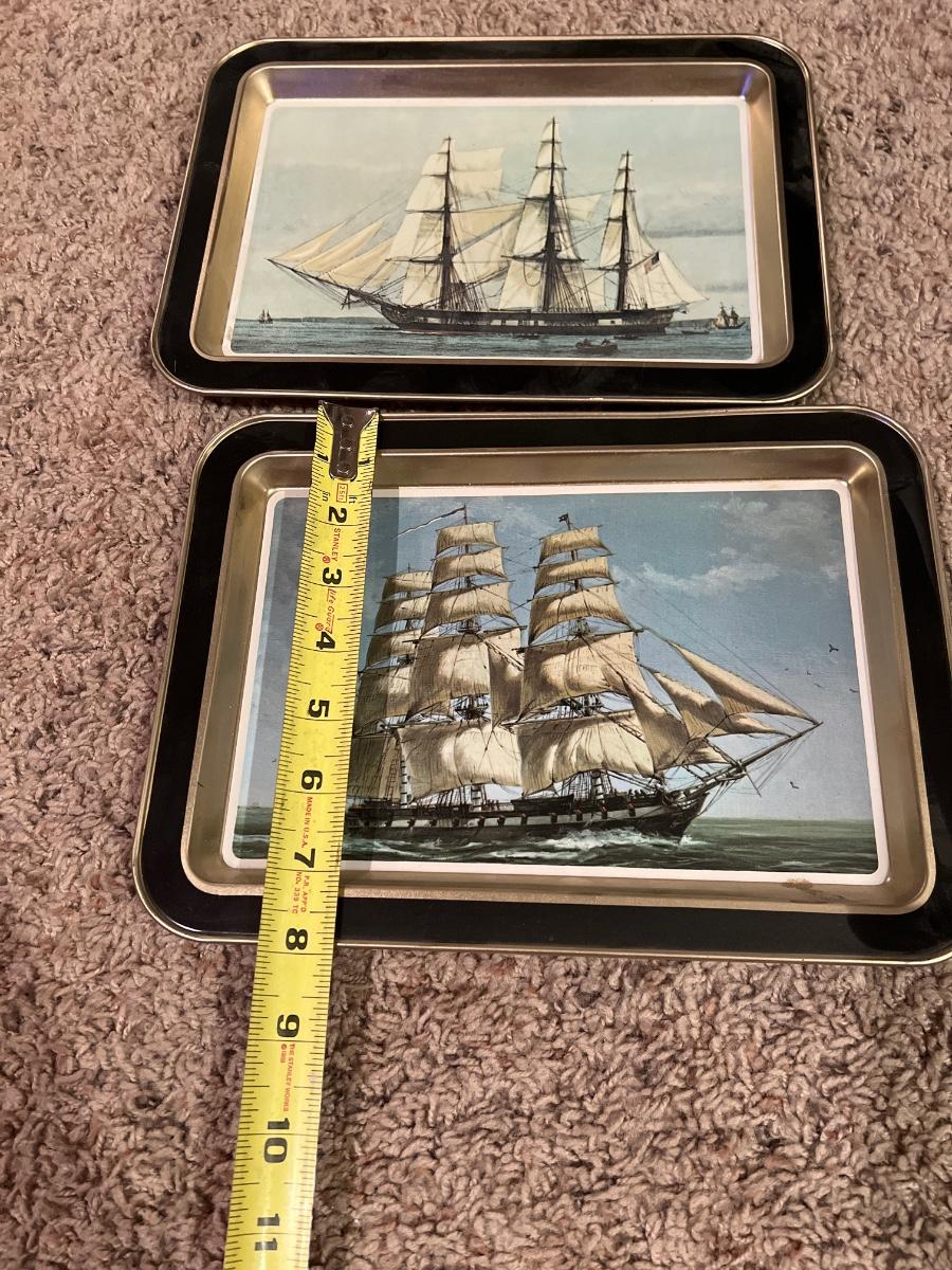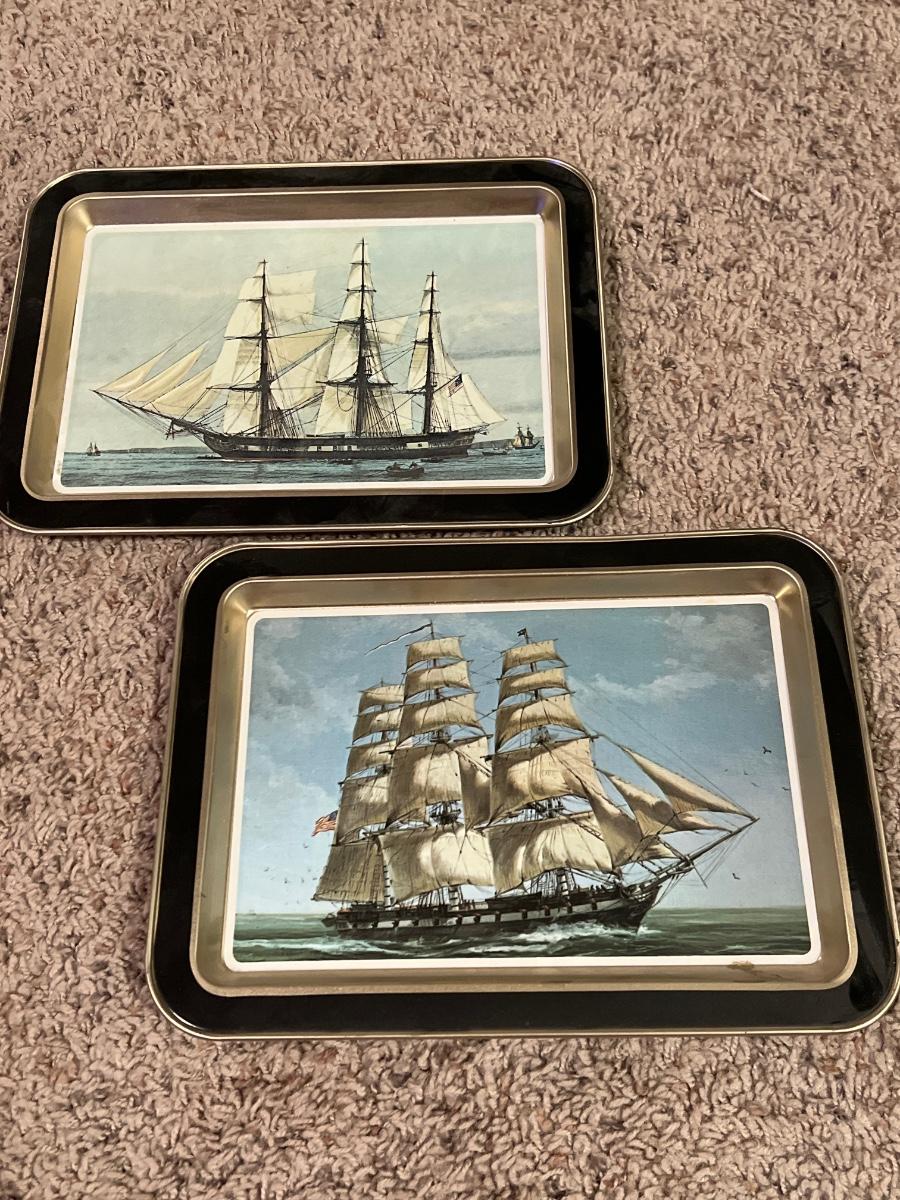 2 tin sailing ship trays The Frigate Constellation Old Ironsides