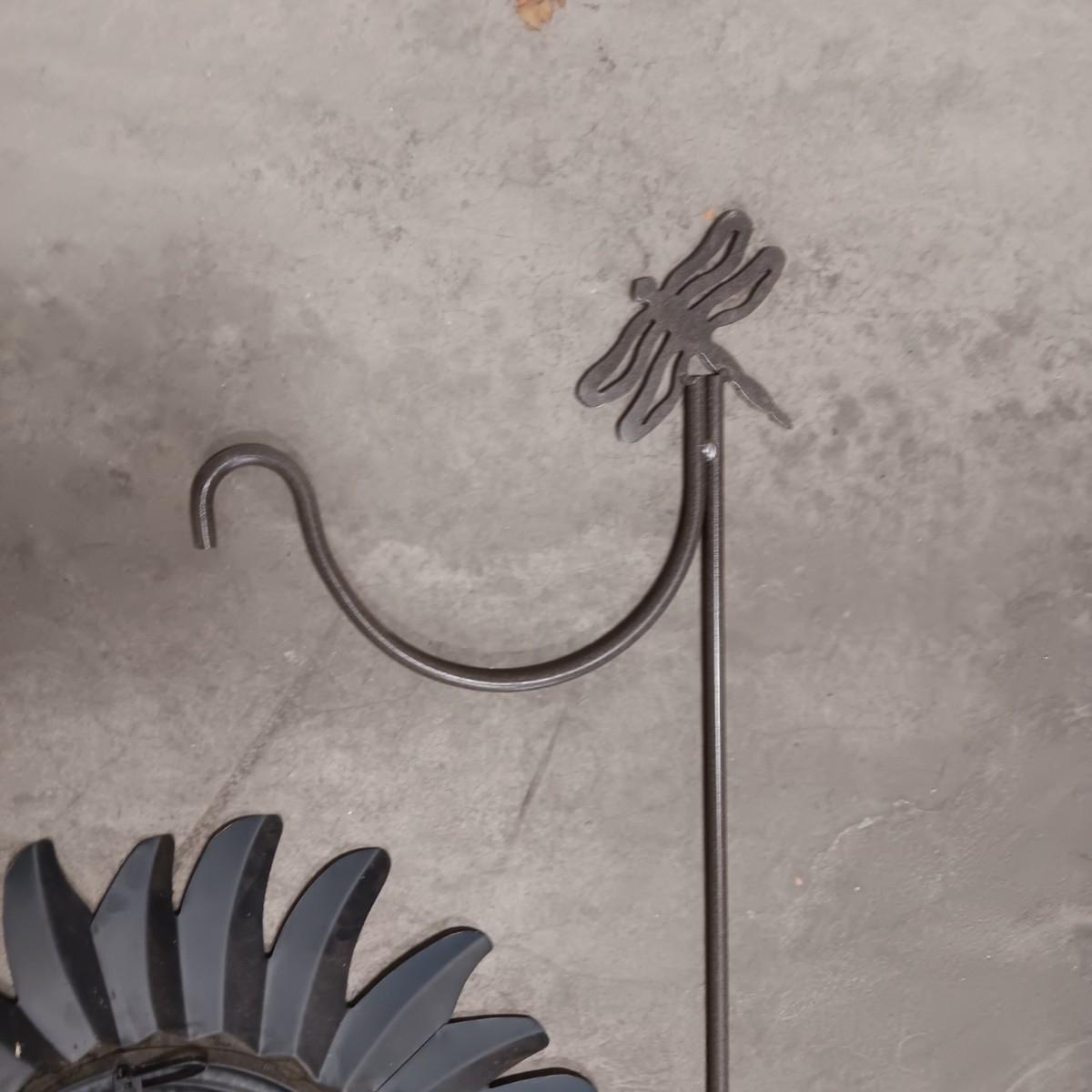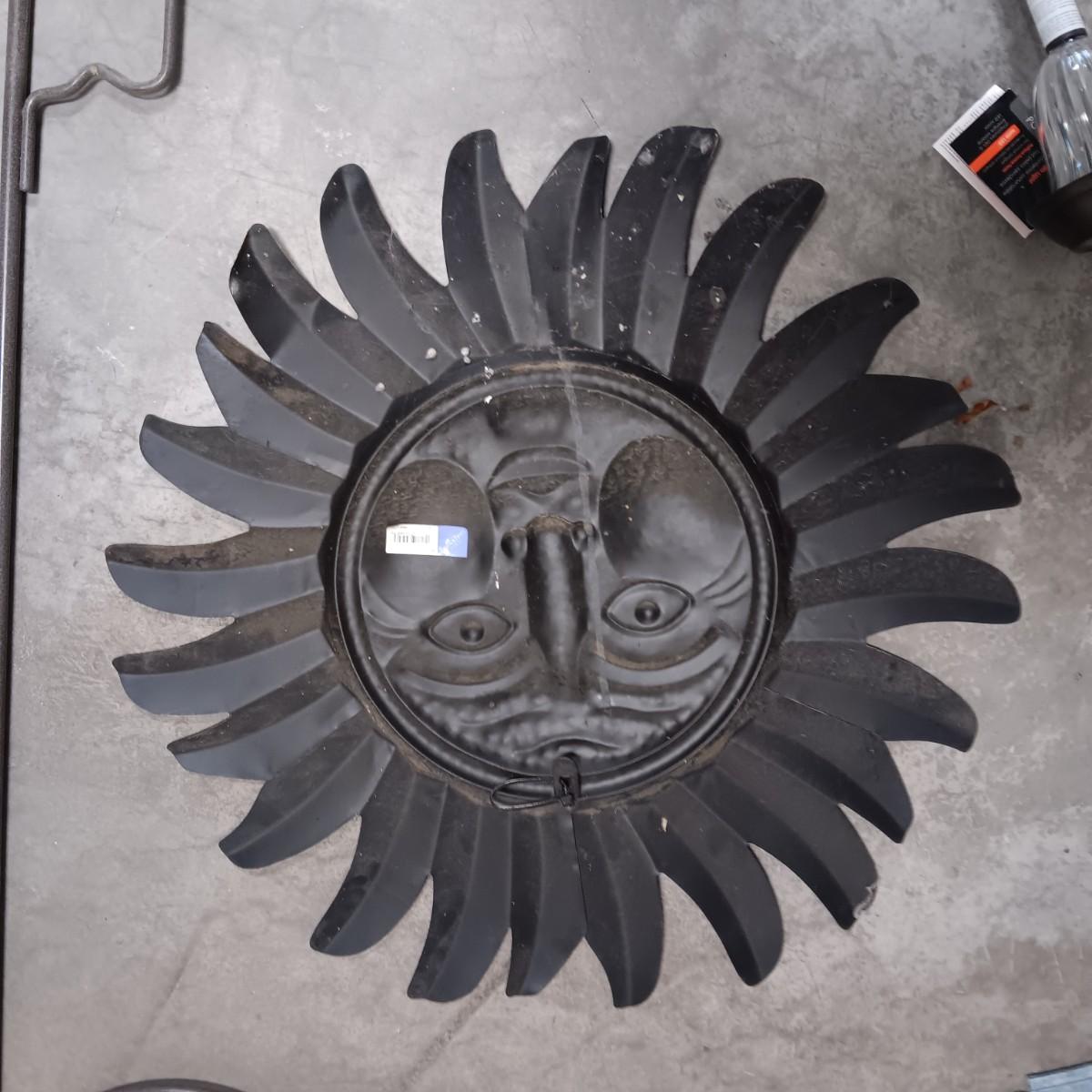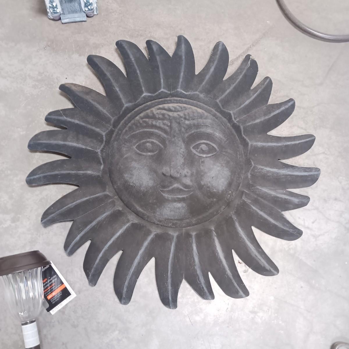 TIN WALL HUNG SUN, IRON SHEPHERD HOOK & A BIRDHOUSE