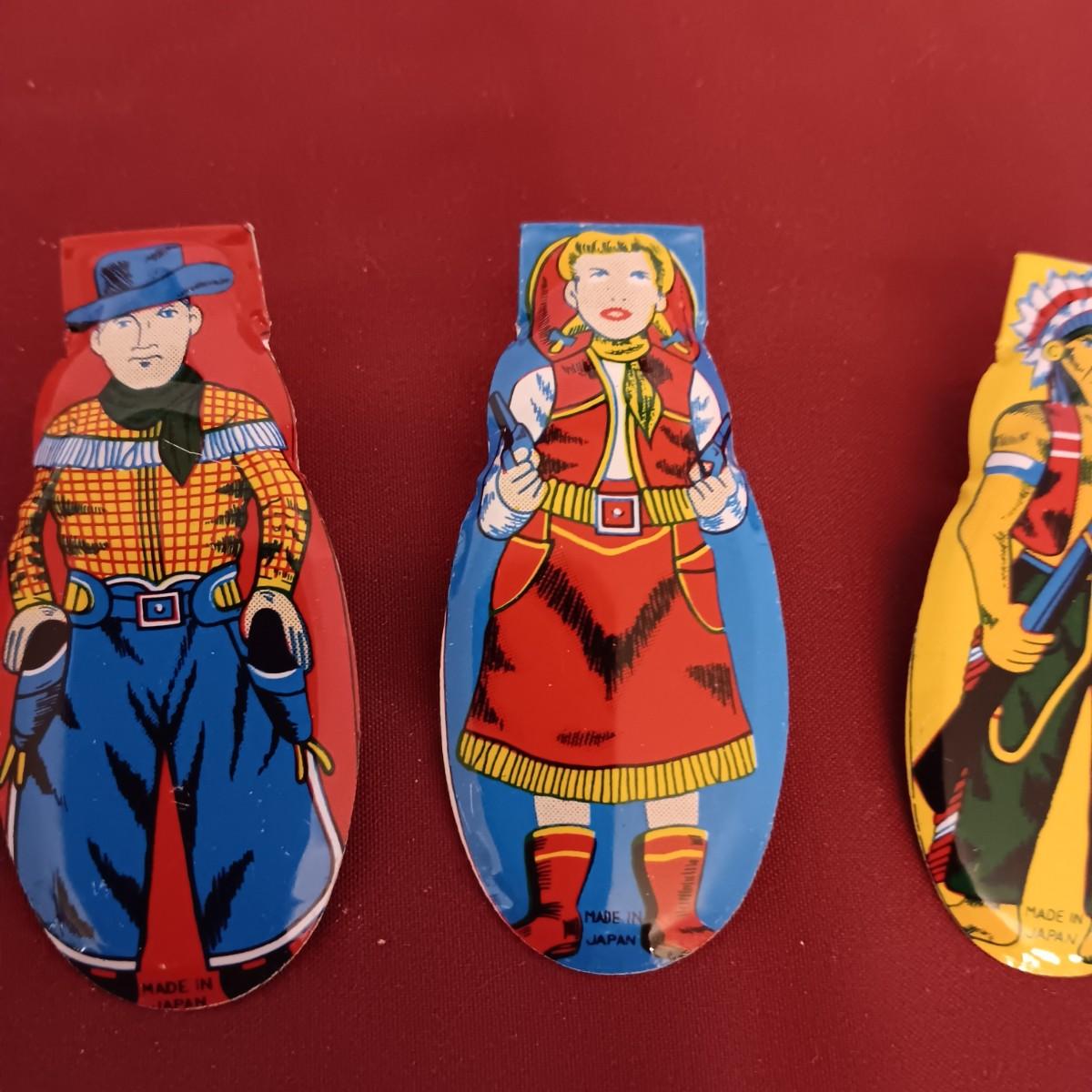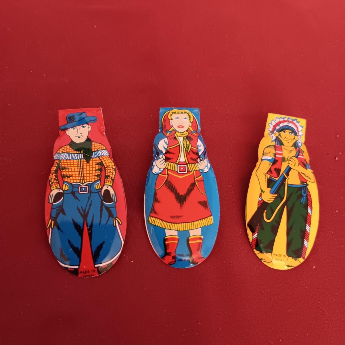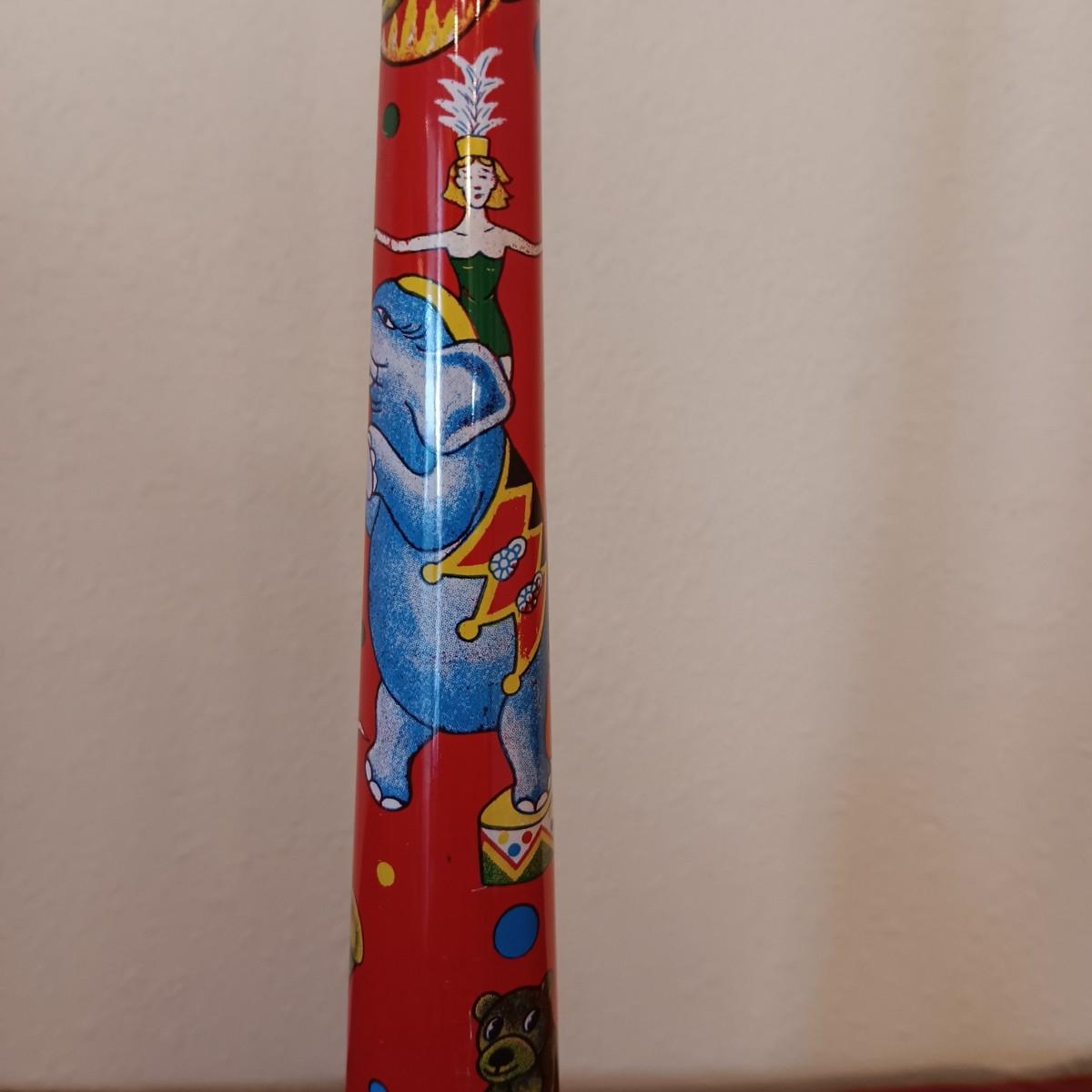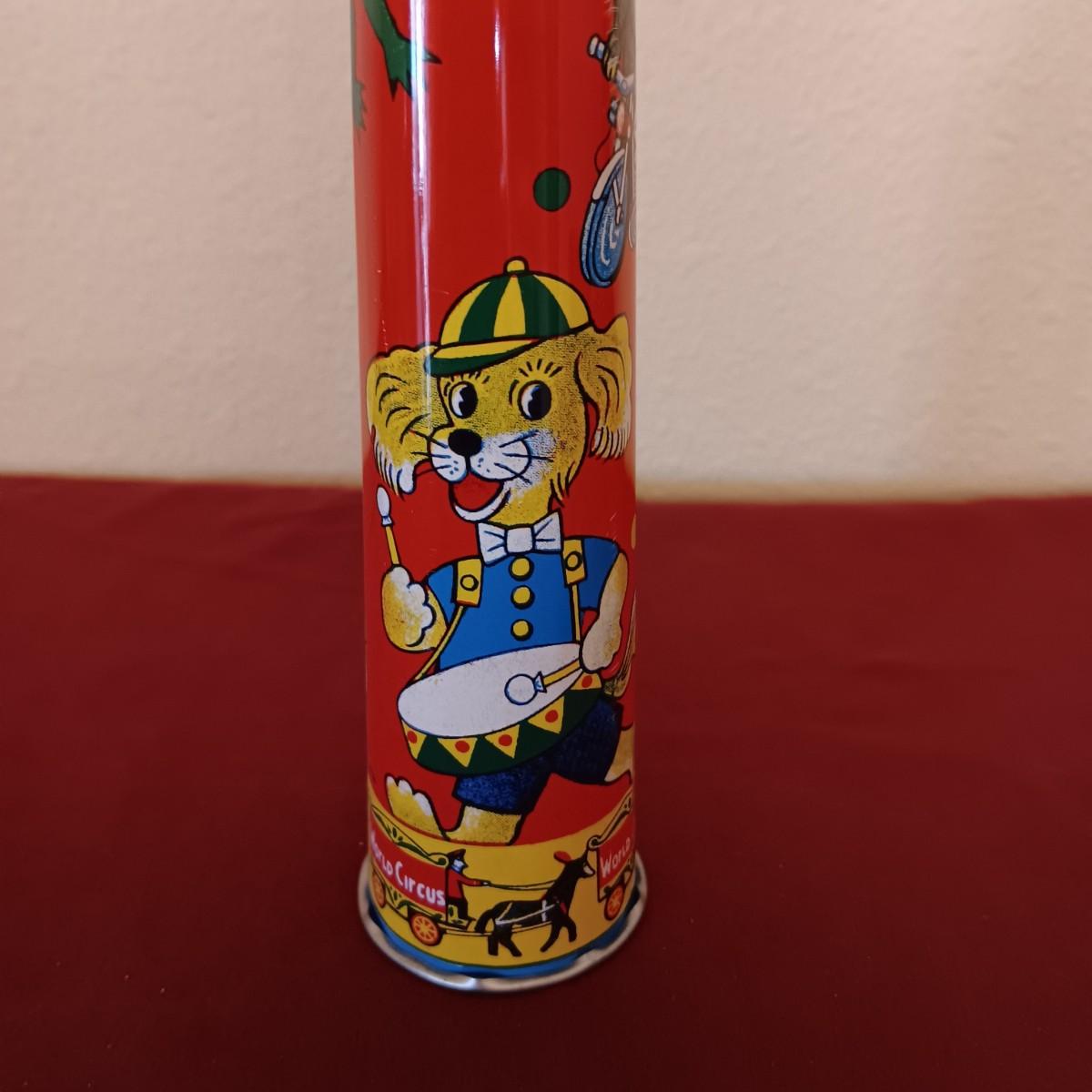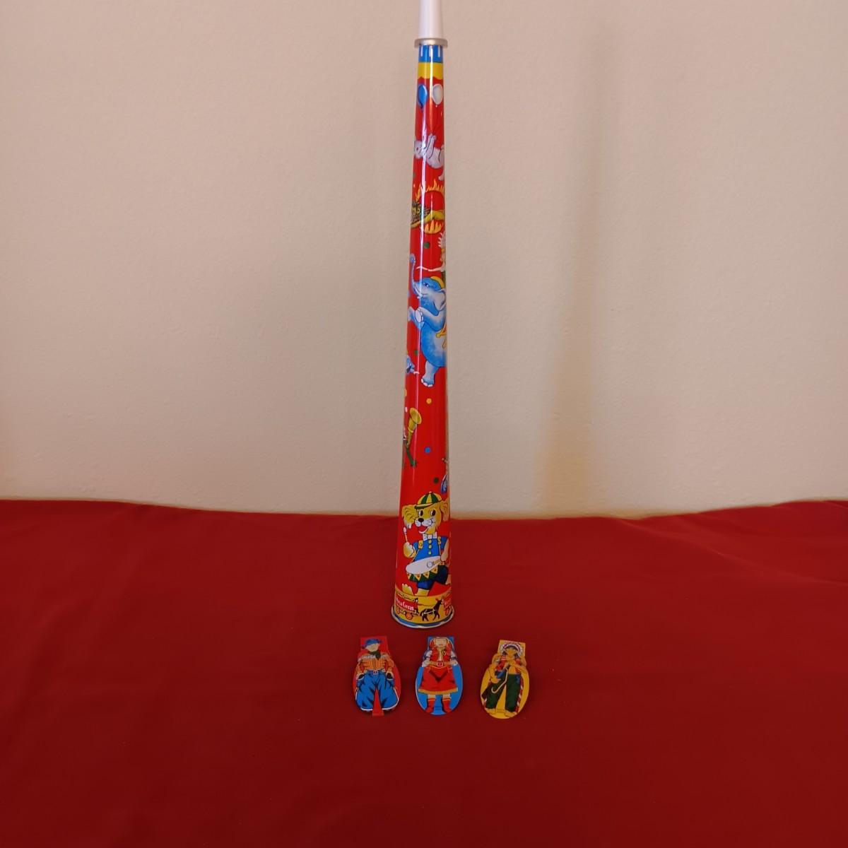 TIN WORLD CIRCUS HORN AND 3 CLICKER CRICKETS