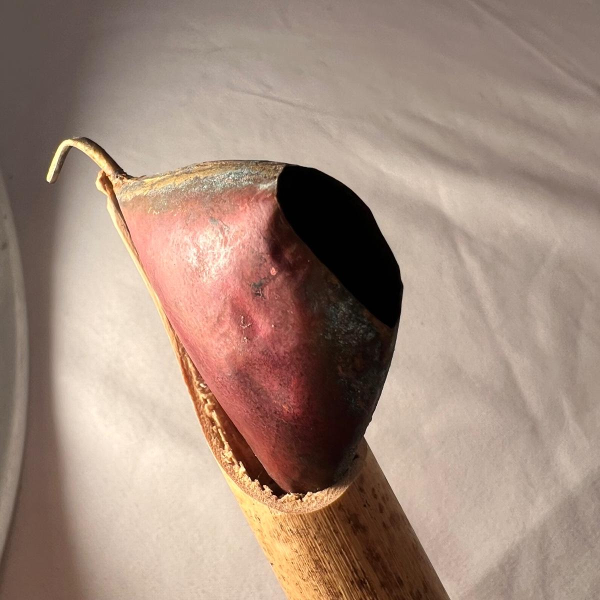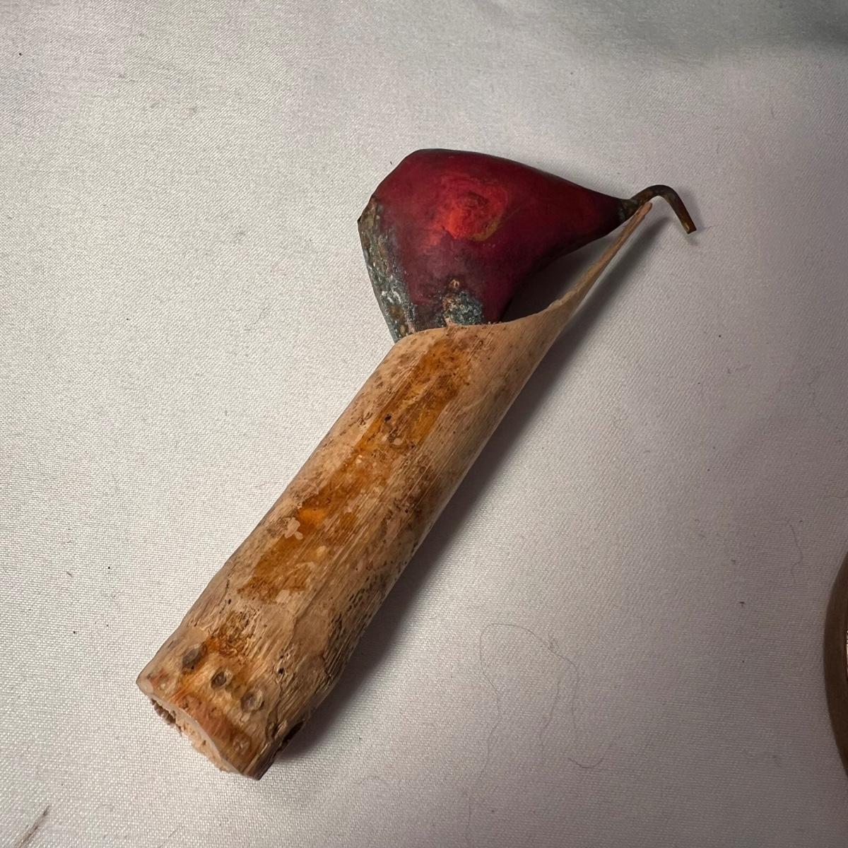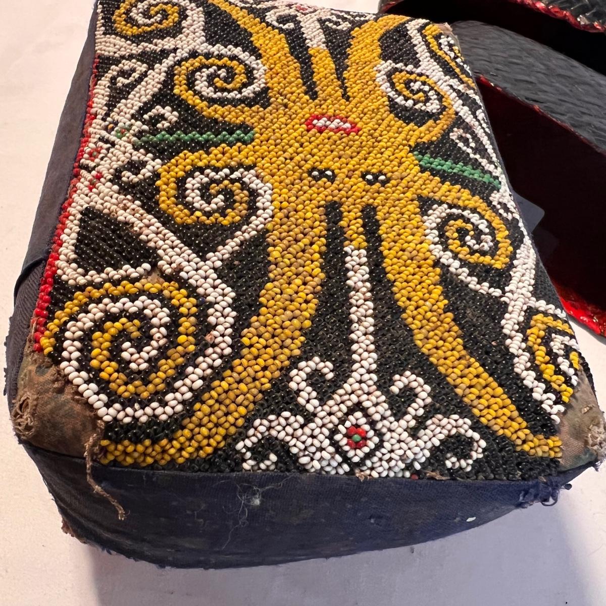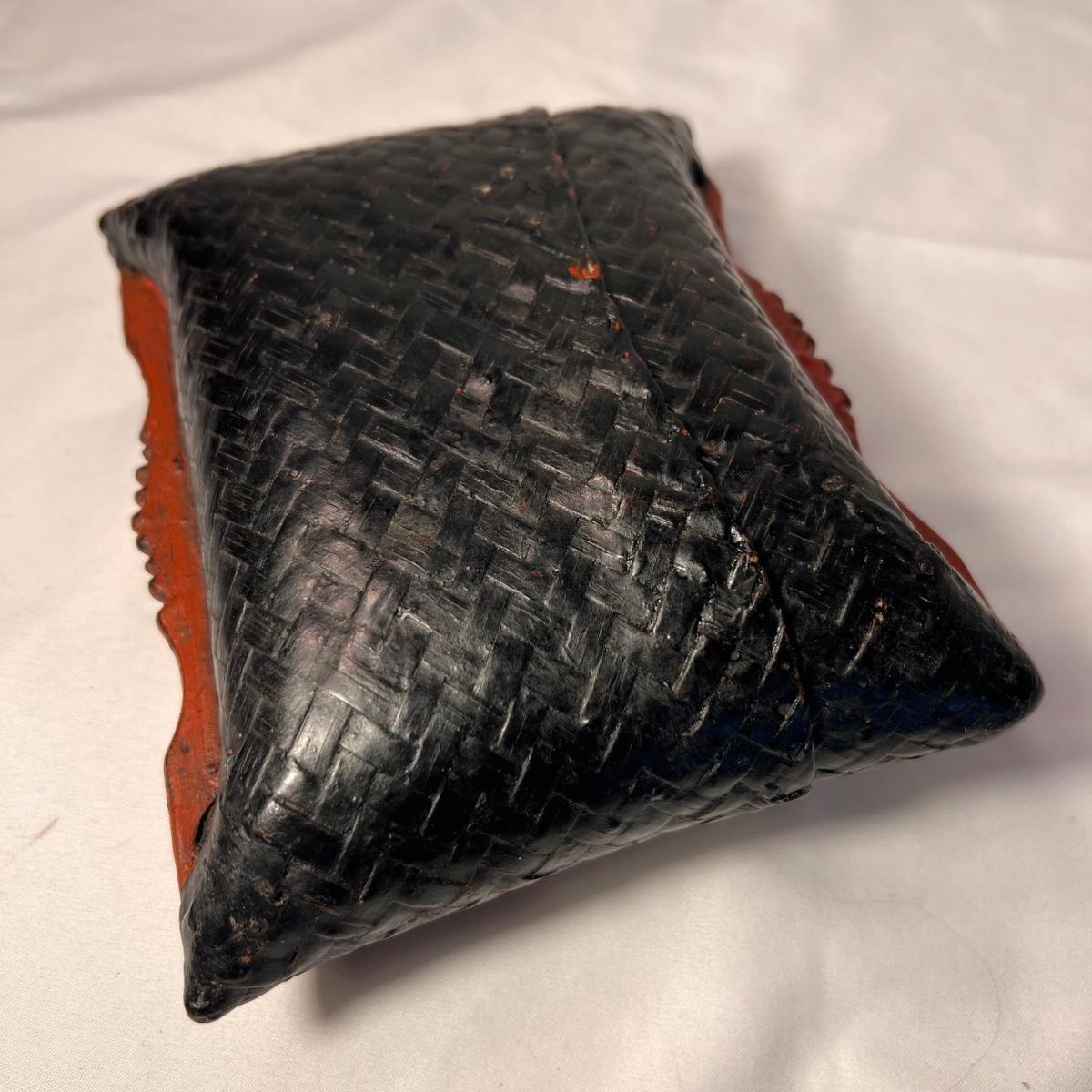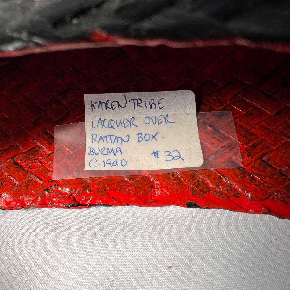 A wonderful assortment of collectibles likely from SE Asia. Two rattan boxes, larger box has a beaded top with yellow, black and white beads (note that the corners have some minor wear, see pic) which measures 6” x 5” x 3”H. The Tingsha bells are metal and make a delightful sound. The Batik tool comes with a paper label with information.