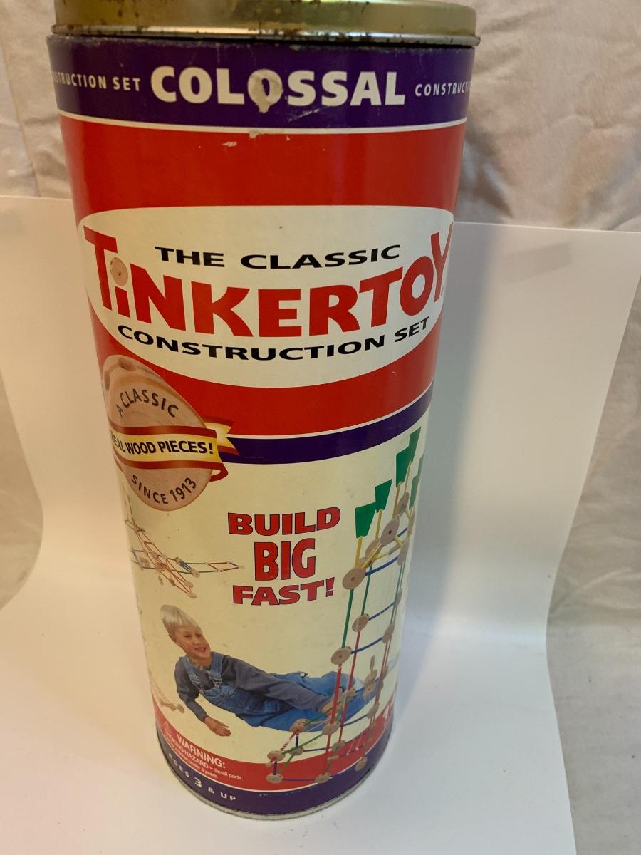 TinkerToy Construction Set - container 16” tall x 6” diameter approx
