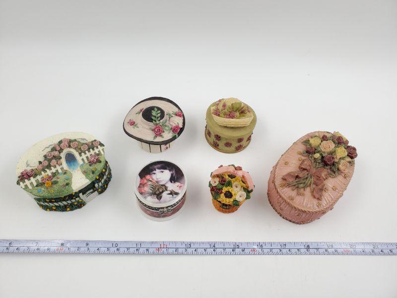 Adorable lot of decorative boxes....hats, flowers and more! All in good condition.