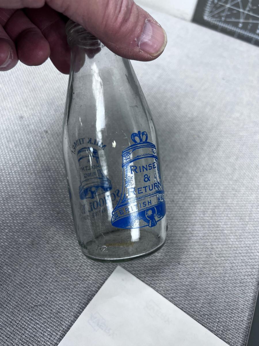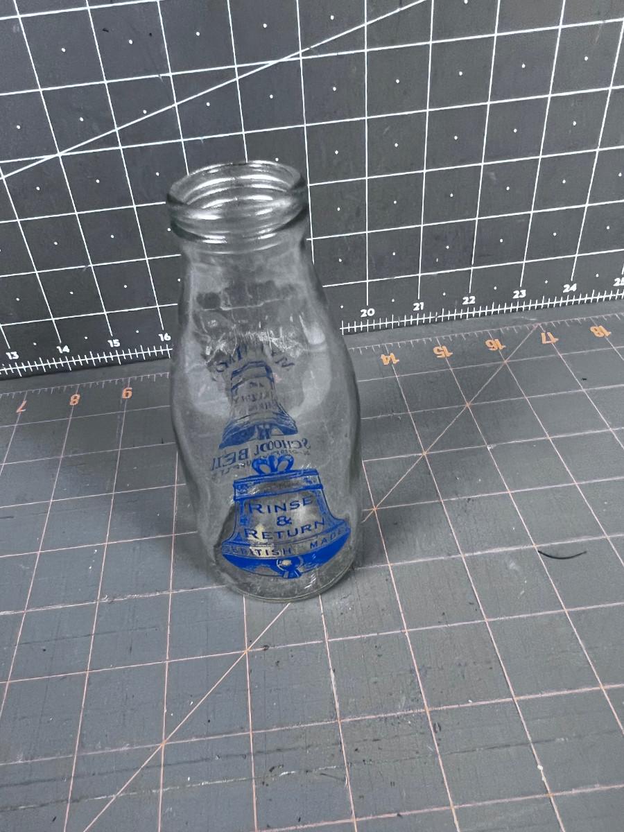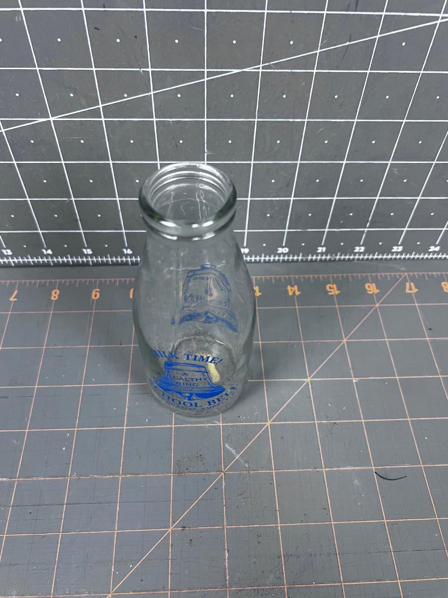 Tiny Milk Jug GLASS   Milk Time School Bell "Rinse & Return"