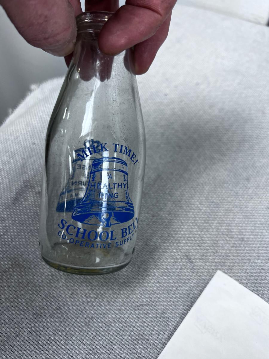 Tiny Milk Jug GLASS Milk Time School Bell "Rinse & Return"