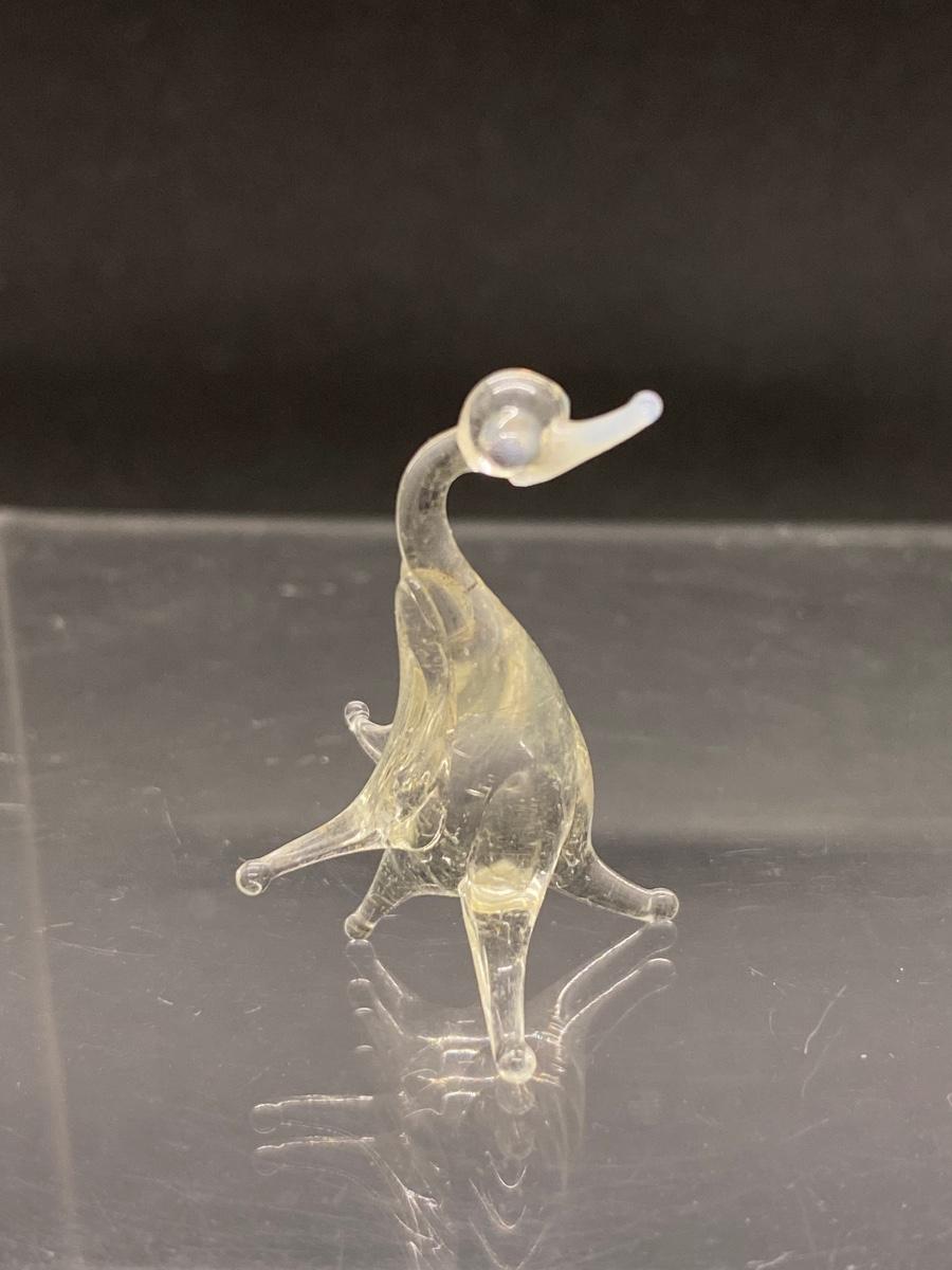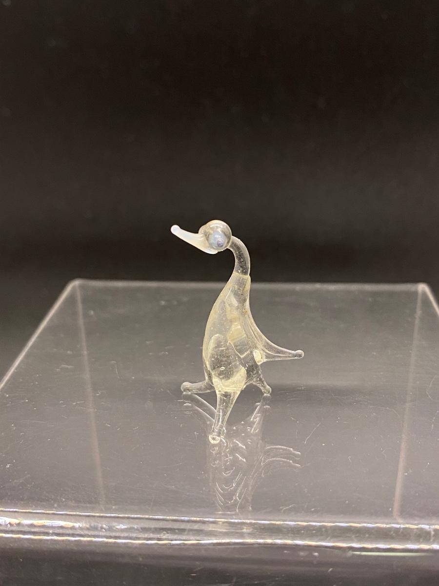 Miniature goose blown glass figurine. About 1" size. Slight yellow tint to glass. In good condition, no chips noticed.