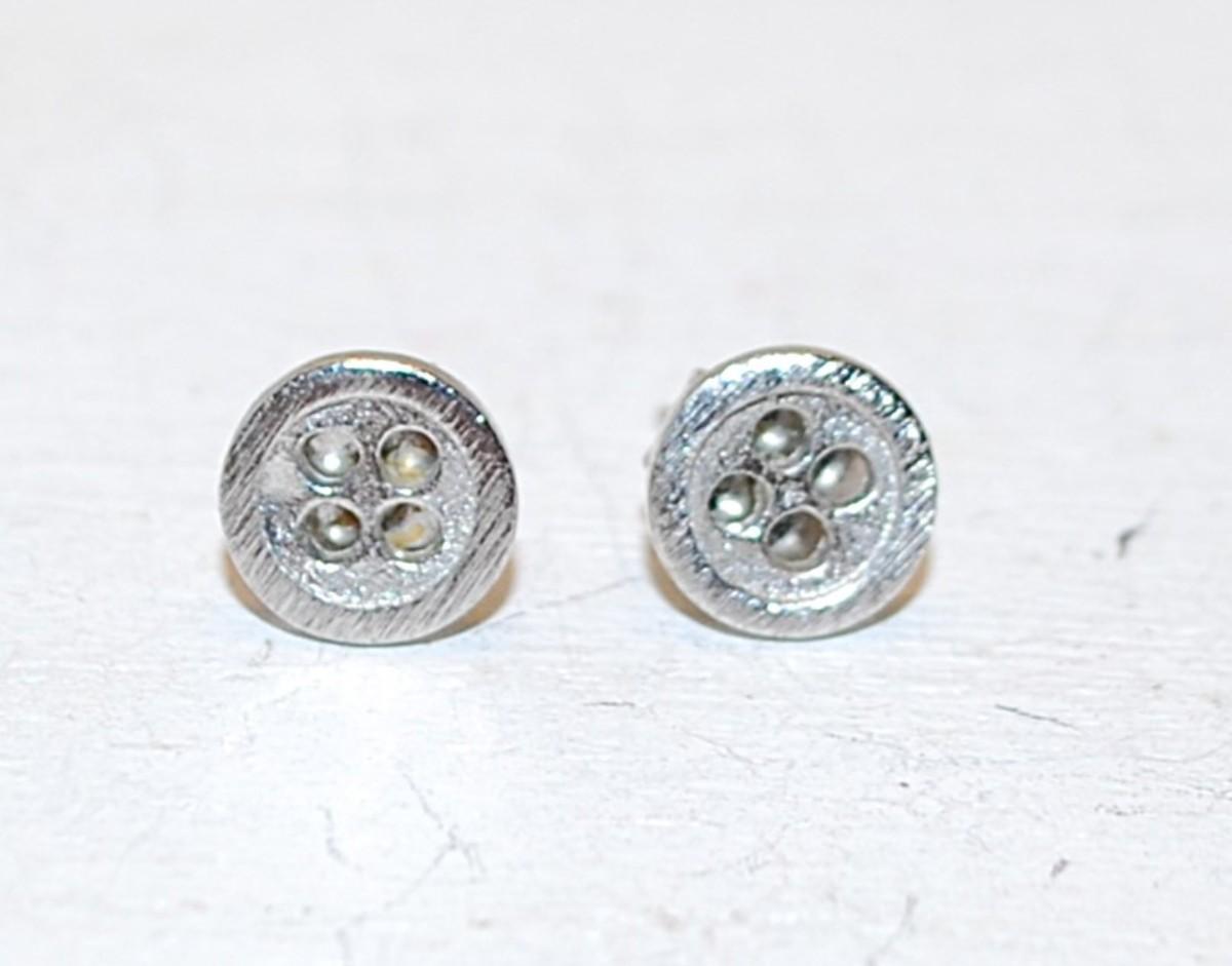 Tiny Silver Tone "Button" Earrings (¼" Circ.) with Stud Clasp