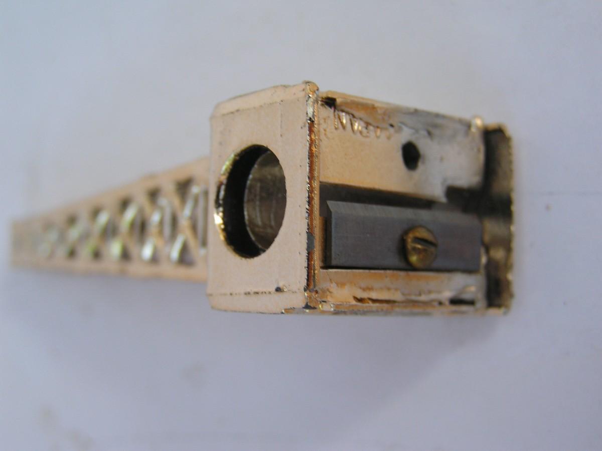Tiny souvenir oil derrick pencil sharpener, about 2" tall