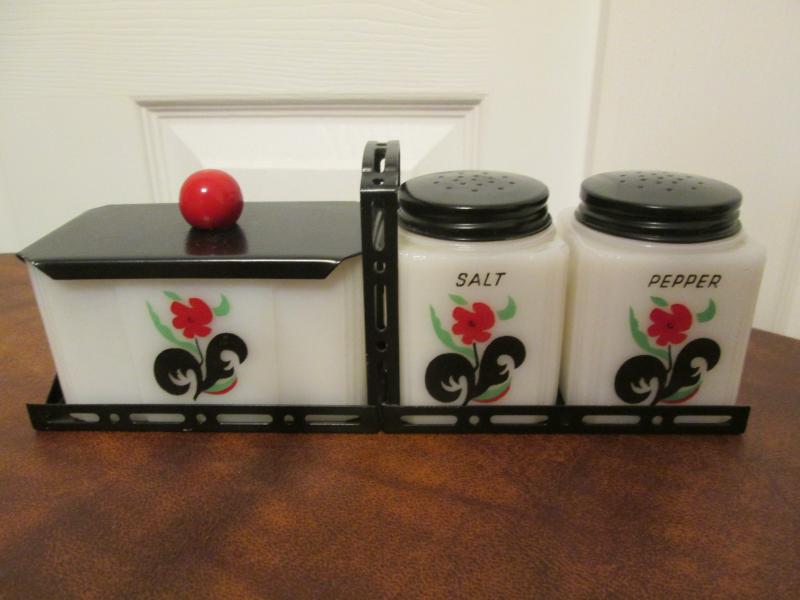 Tipp City Salt & Pepper Shakers With Grease Jar & Rack