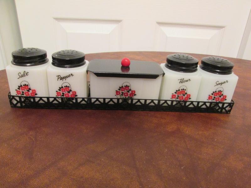 Tipp City Salt & Pepper Shakers With Grease Jar & Rack - Flower Basket