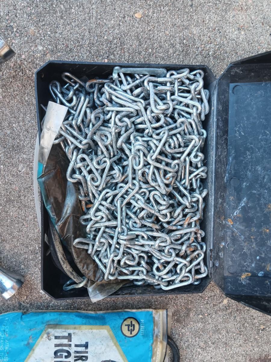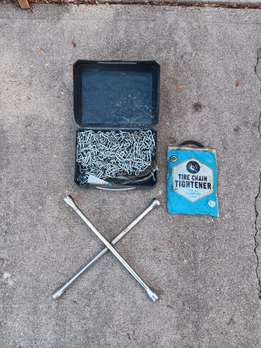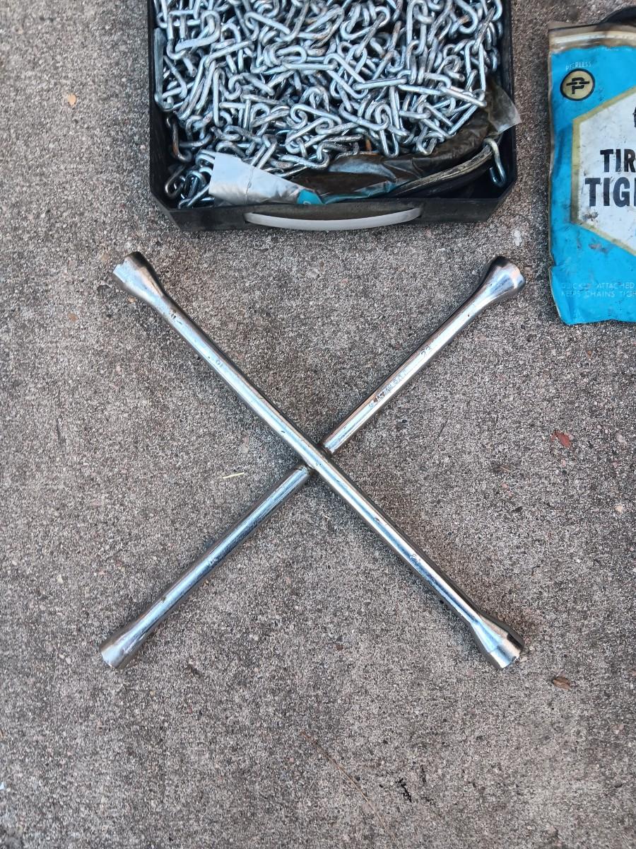 TIRE CHAINS AND A 4 WAY LUG WRENCH