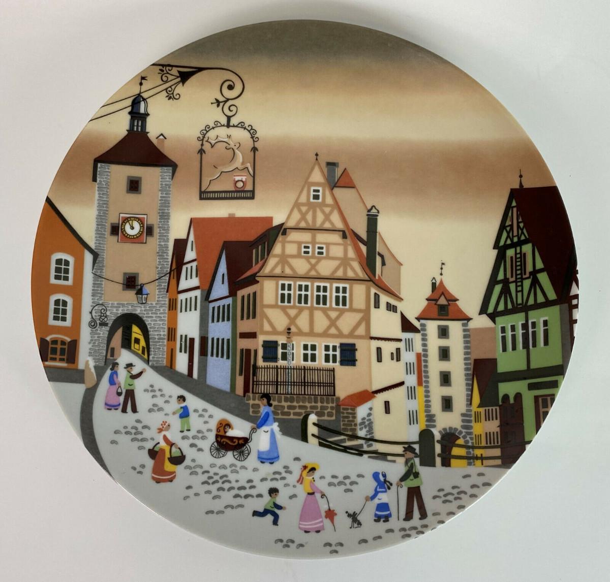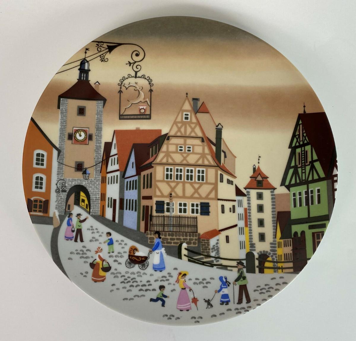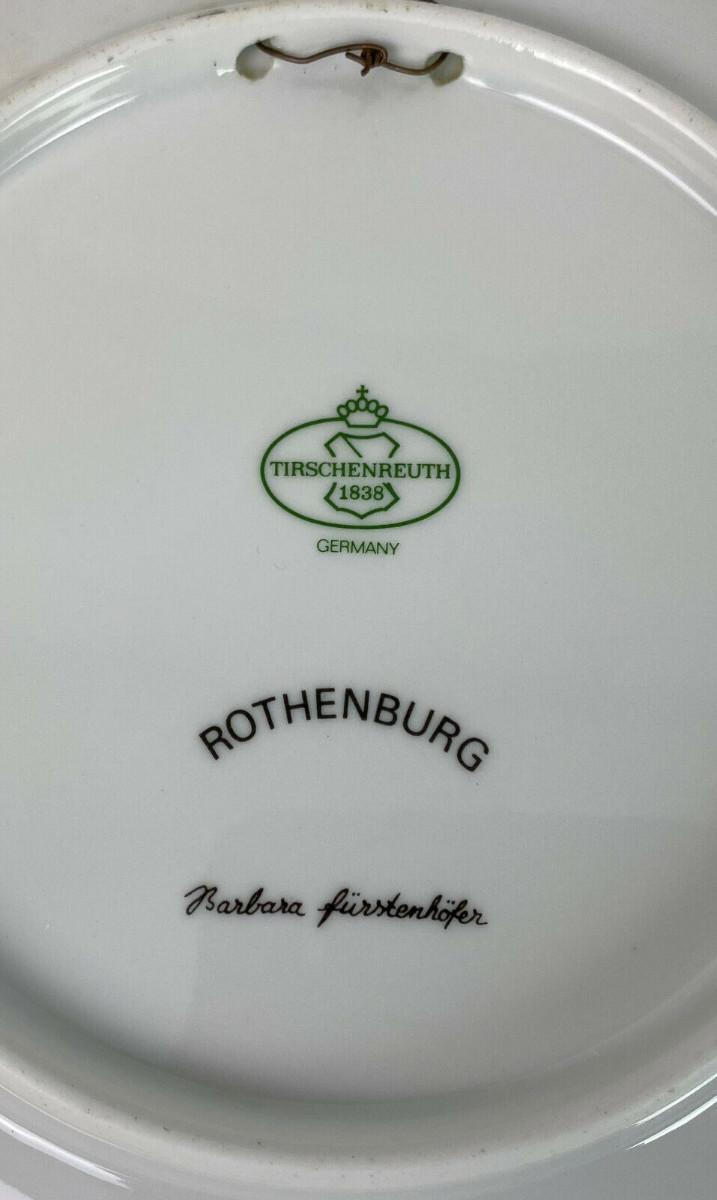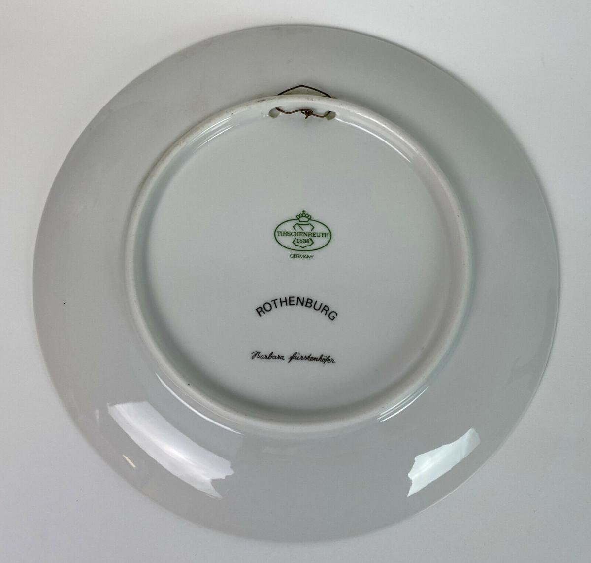 Excellent condition on this 7.75" porcelain wall plate featuring the artwork of Barbara Fürstenhöfer..the subject is the town of Rothenberg in Hesse...produced by Tirschenreuth (Hutschenreuther) in Germany..1969-1995 mark...when the porcelain works closed after 150 years.