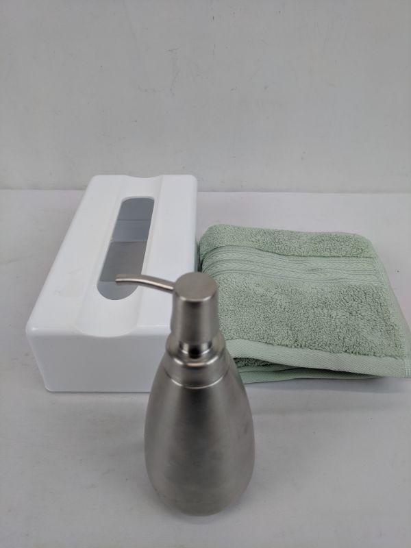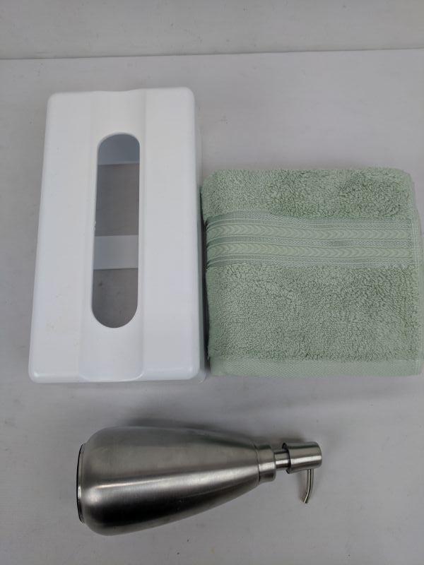 Tissue Box Holder, Stainless Steel Lotion/Soap Pump, Mint Hand Towel - New