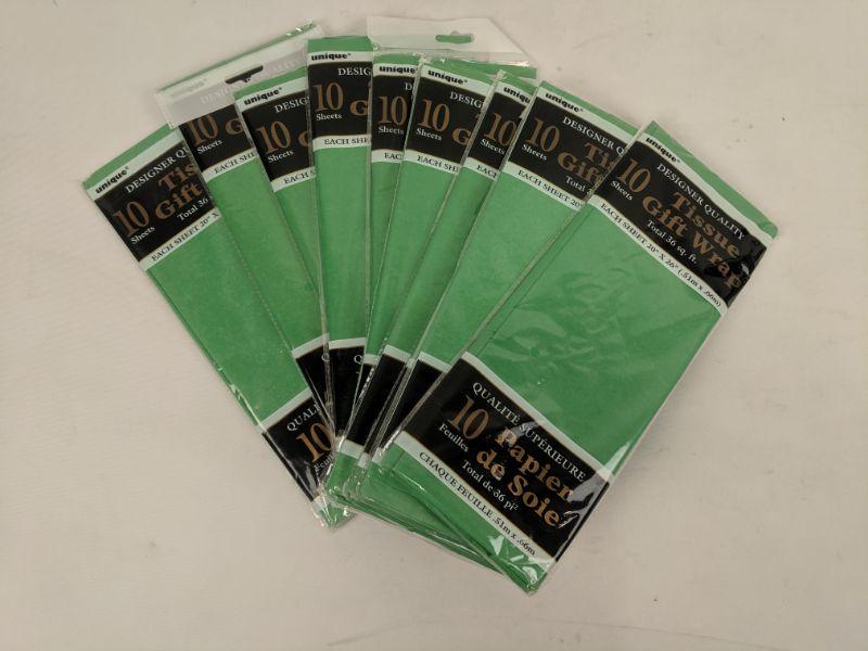 Tissue Gift Wrap 10 Sheets, 36 sq. ft., Green, Pack of 10 - New