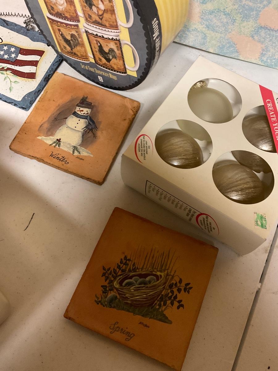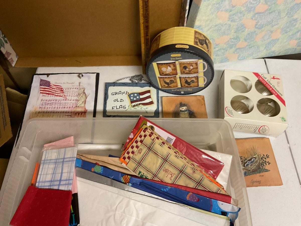 Tissue Gift Wrap, Glass Ornaments, Storage Box And plaques