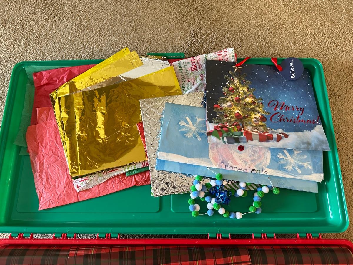 TISSUE PAPER, GIFT WRAPPING PAPER AND TOTE