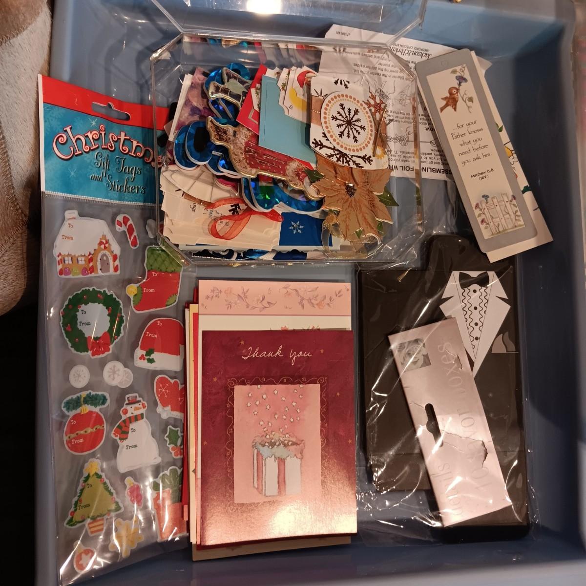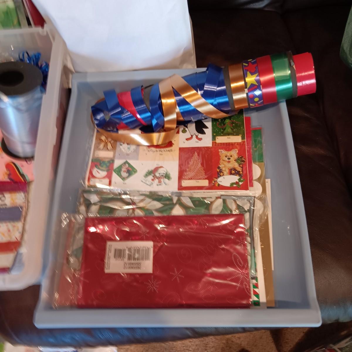 TISSUE PAPER, NAME TAGS, RIBBON, BOSE AND MORE ALL IN A ORGANIZING TOTE TOTE