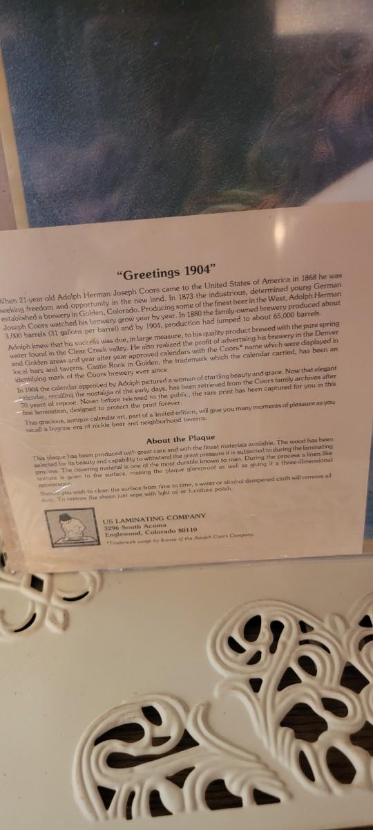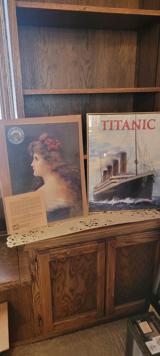 Unique item Adolph Coors poster with information. A poster framed of the Titanic