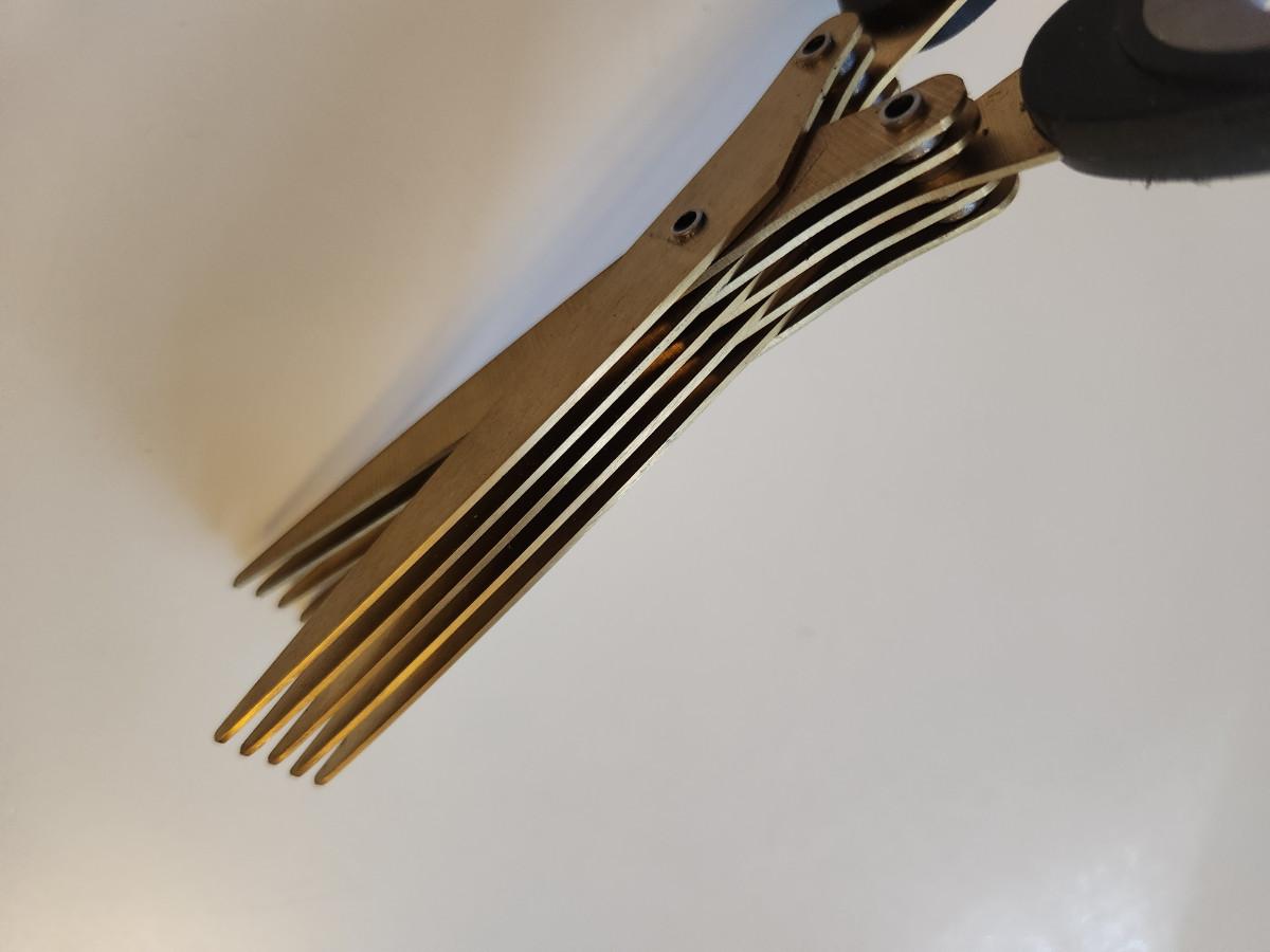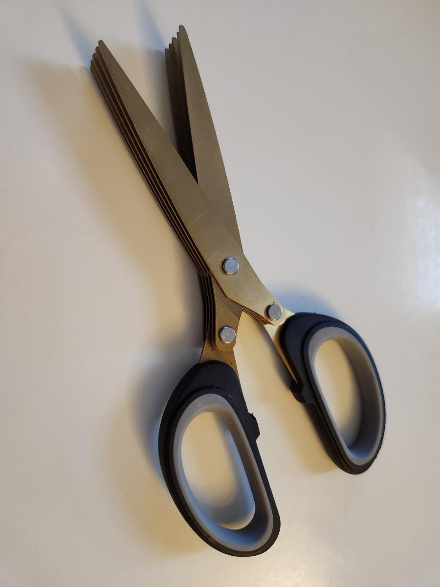 This auction lot is for a top-of-the-line Titanium-Coated Shredder Scissors. The titanium coating on the blades ensures durability and long-lasting use, making them the perfect addition to any office setting. Measuring approximately 8-inchesi in length with 5 blades. These scissors are designed to effortlessly shred paper and other materials with ease.