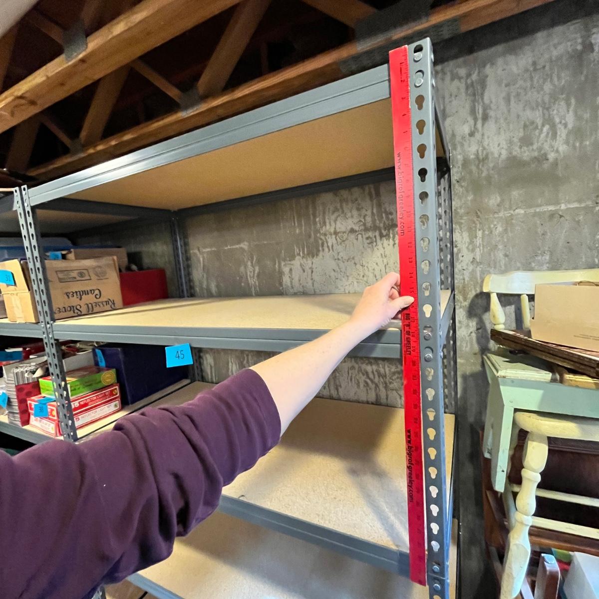 Nice heavy duty storage shelf! We have several of these! Please note, as a favor to JR, these are loaded with items. He would be so happy if you'd wait until 4pm or so on pick up day to get this.