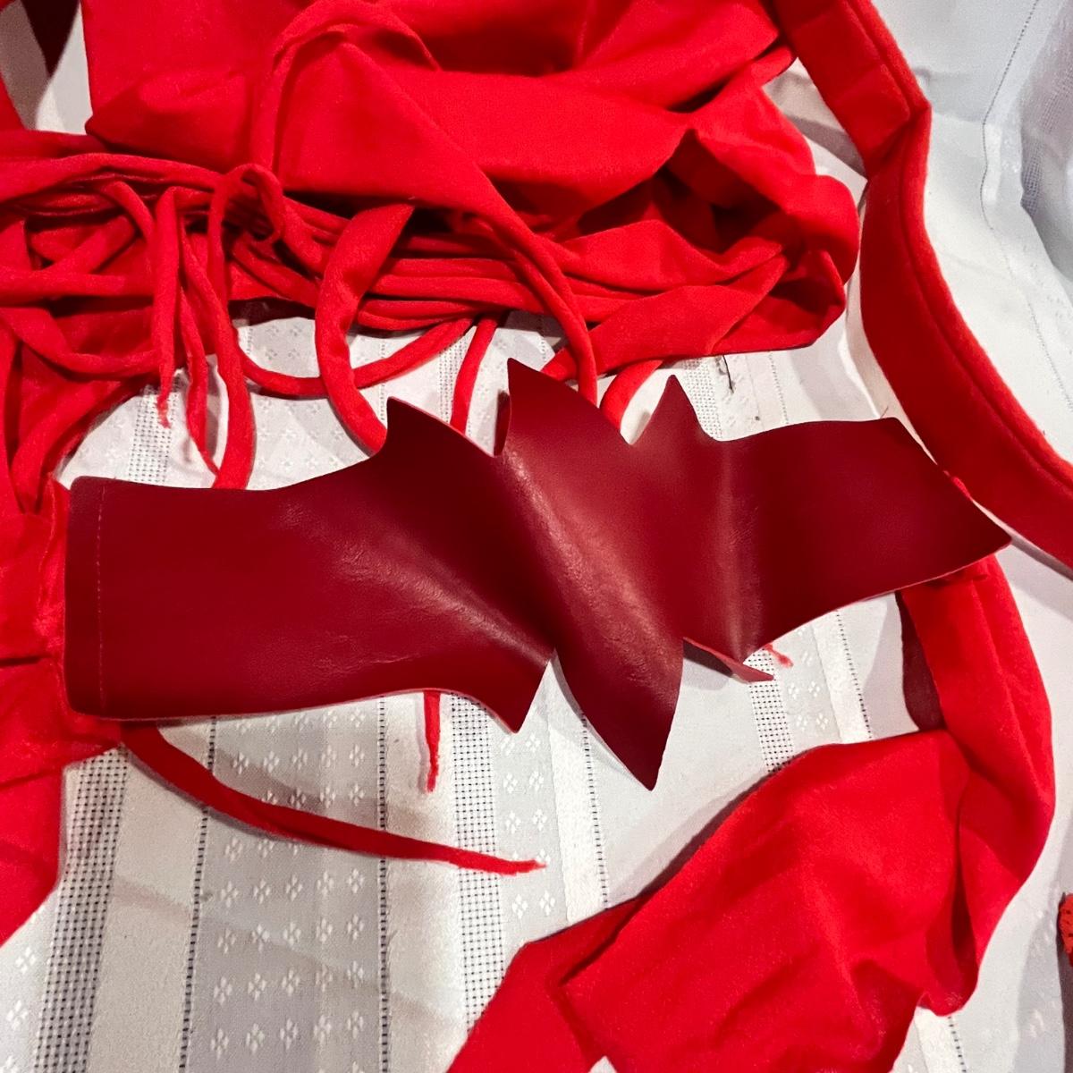The outfit on the left has velcro spots. I'm thinking this may be for the Red Barron wings...am unsure.