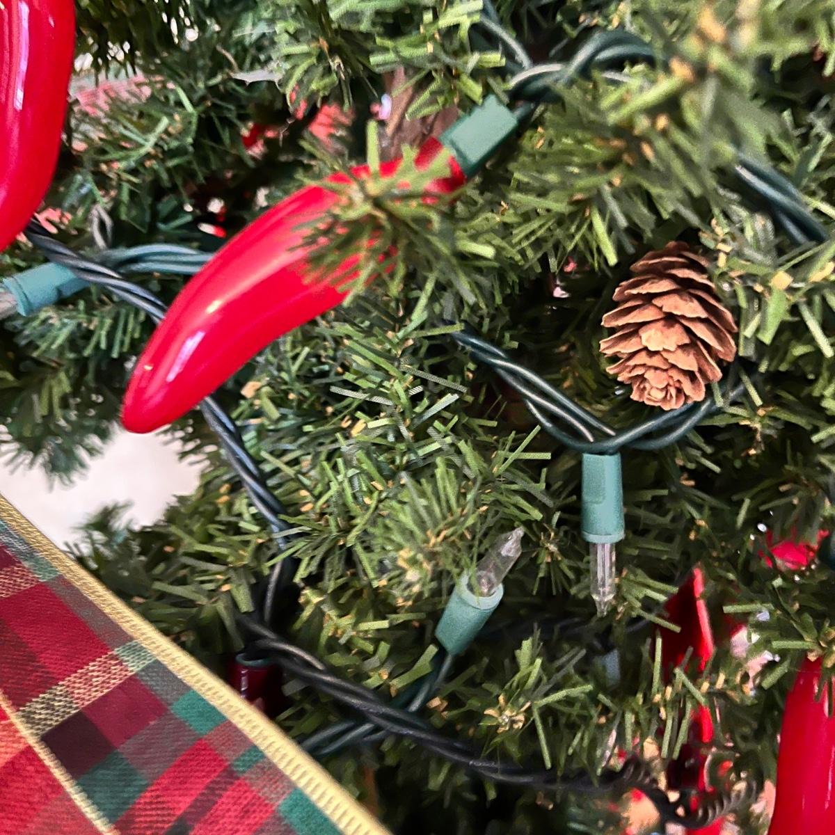 Pencil tree with Pepper string lights