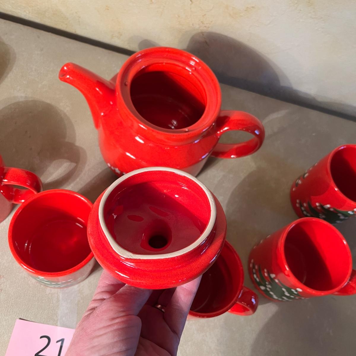 Waechtersbach Red Christmas Tree Teapot & mugs