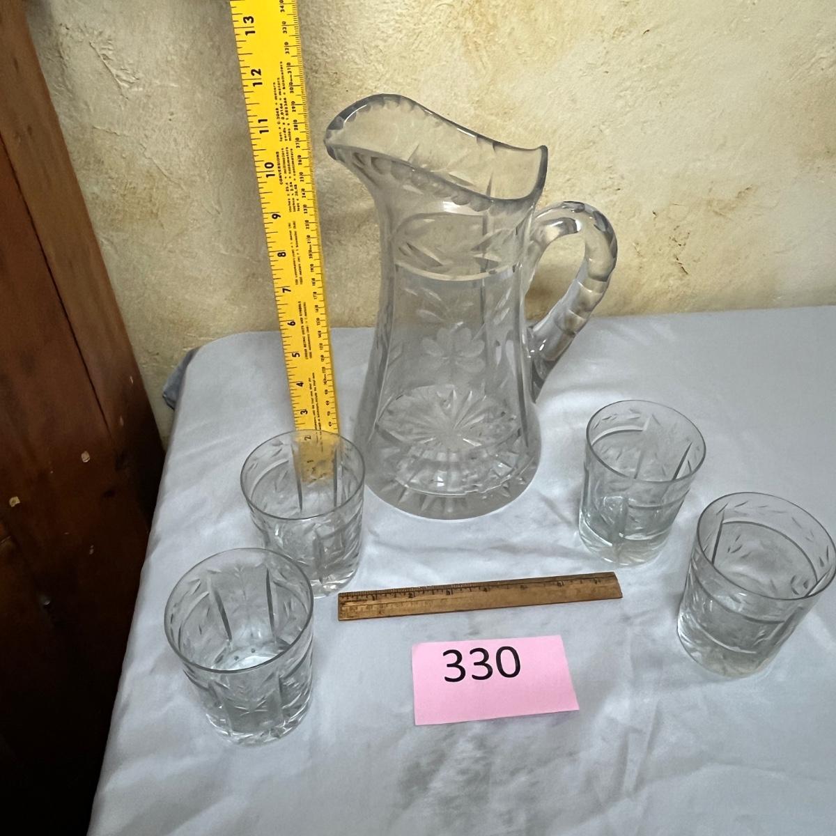 Antique Cut Glass Pitcher & tumblers