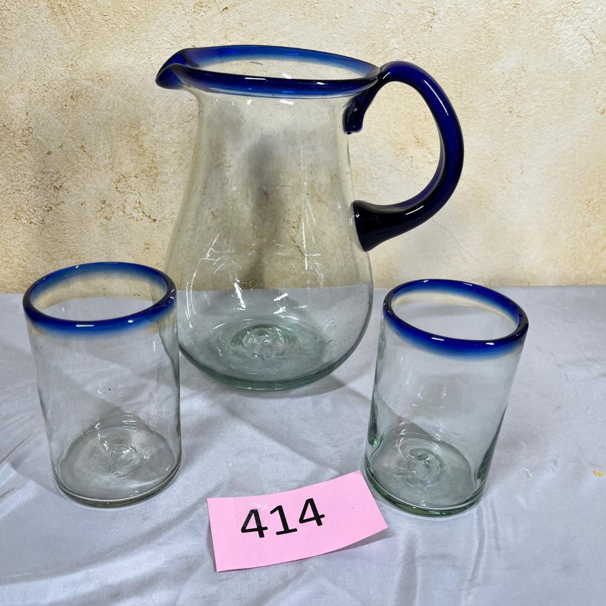 Mexican glass Pitcher & 2 tumblers