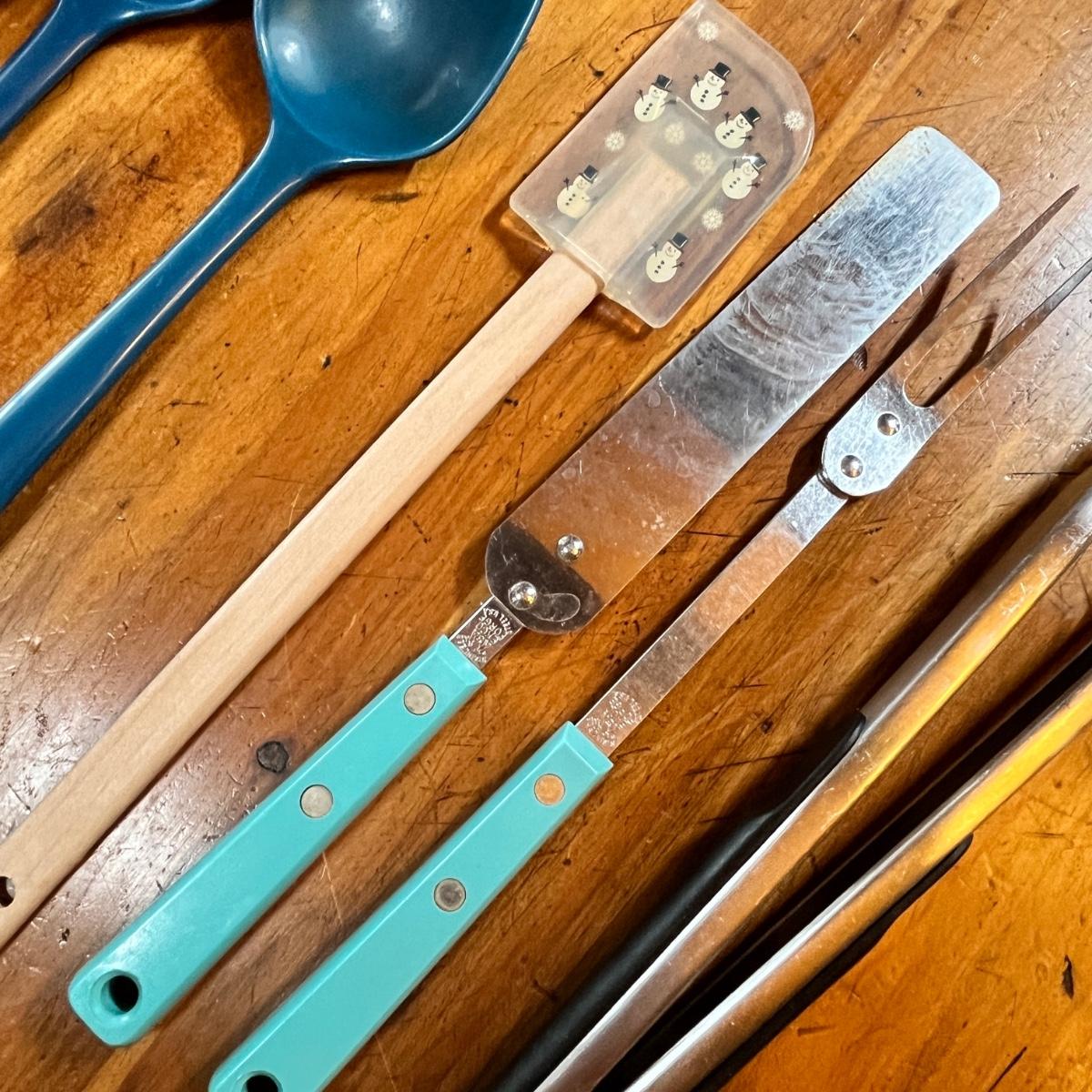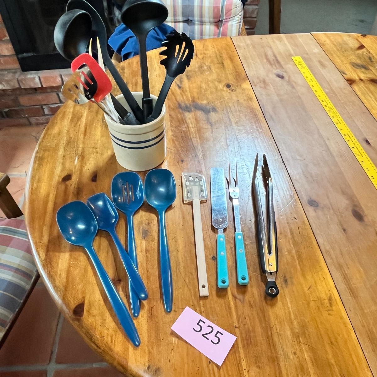 Crock jar of utensils