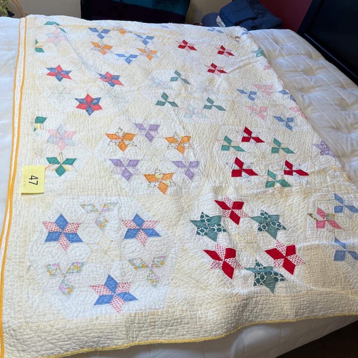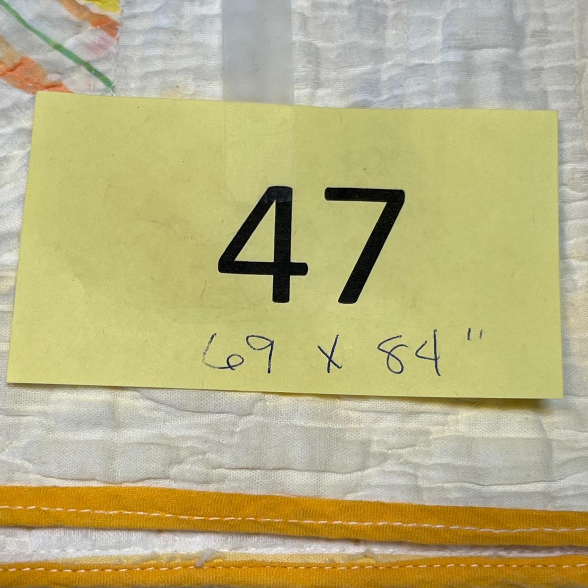Hand done! Machine sewn. some damage, see pictures. Size on lot number.
