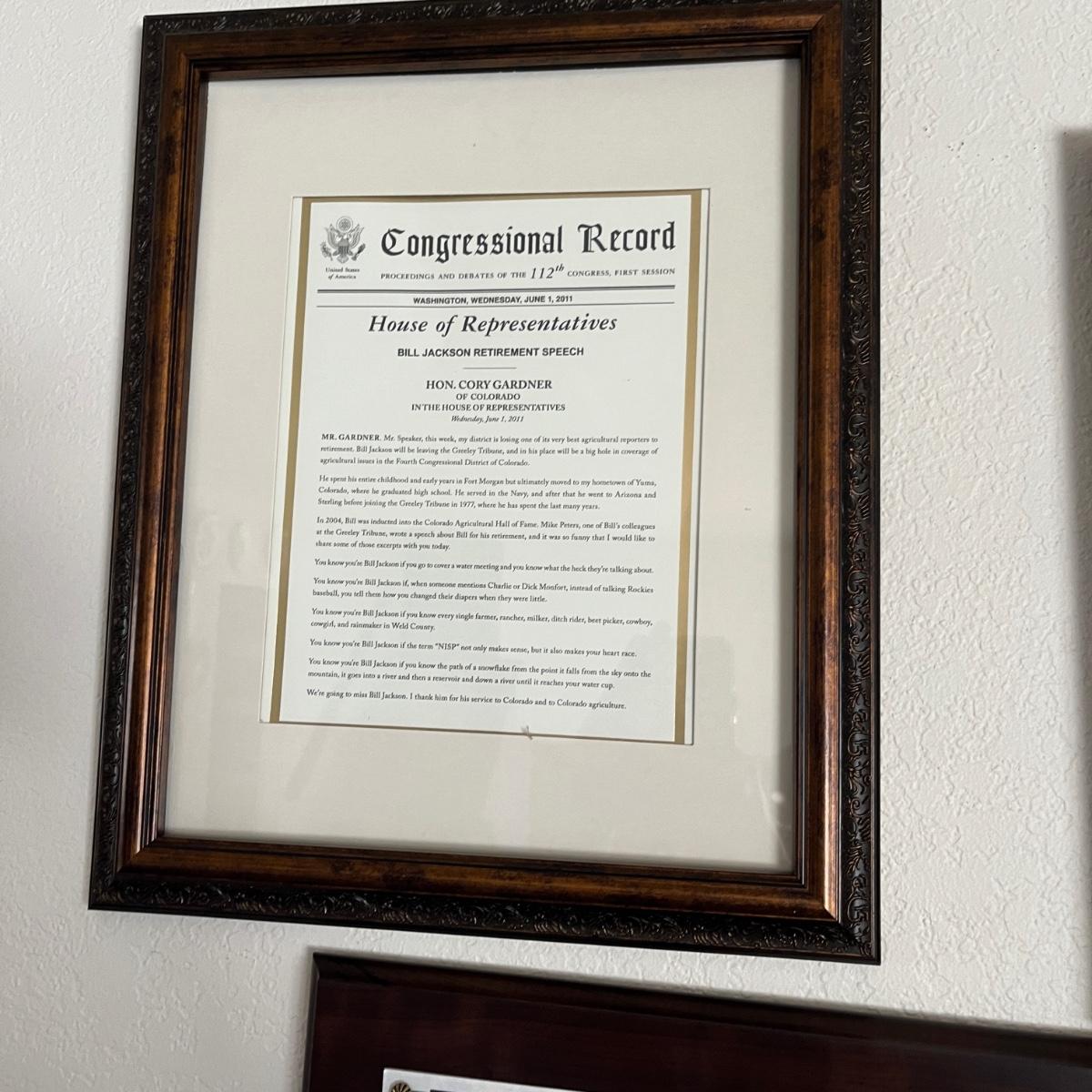 A large lot of Bill Jackson's reporting awards! Including a letter from US Congress!
