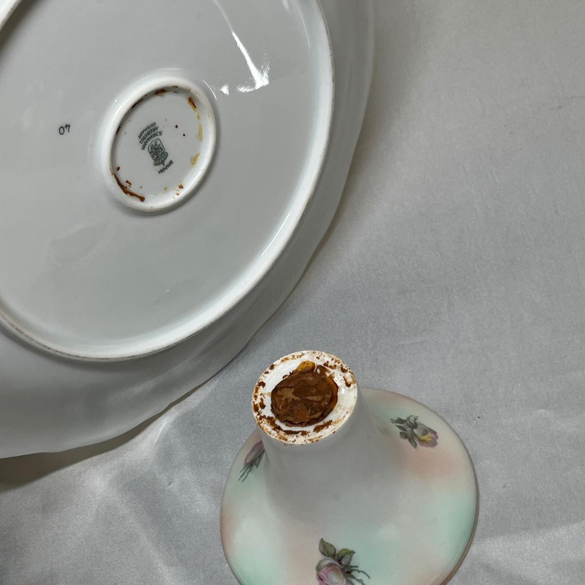 All in good shape, the cake plate needs re-glued. That is how it originally came.