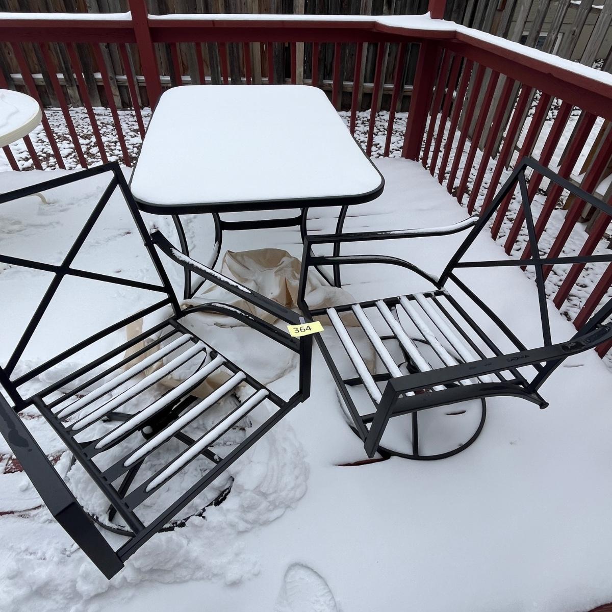 Glass top patio table with 2 chairs