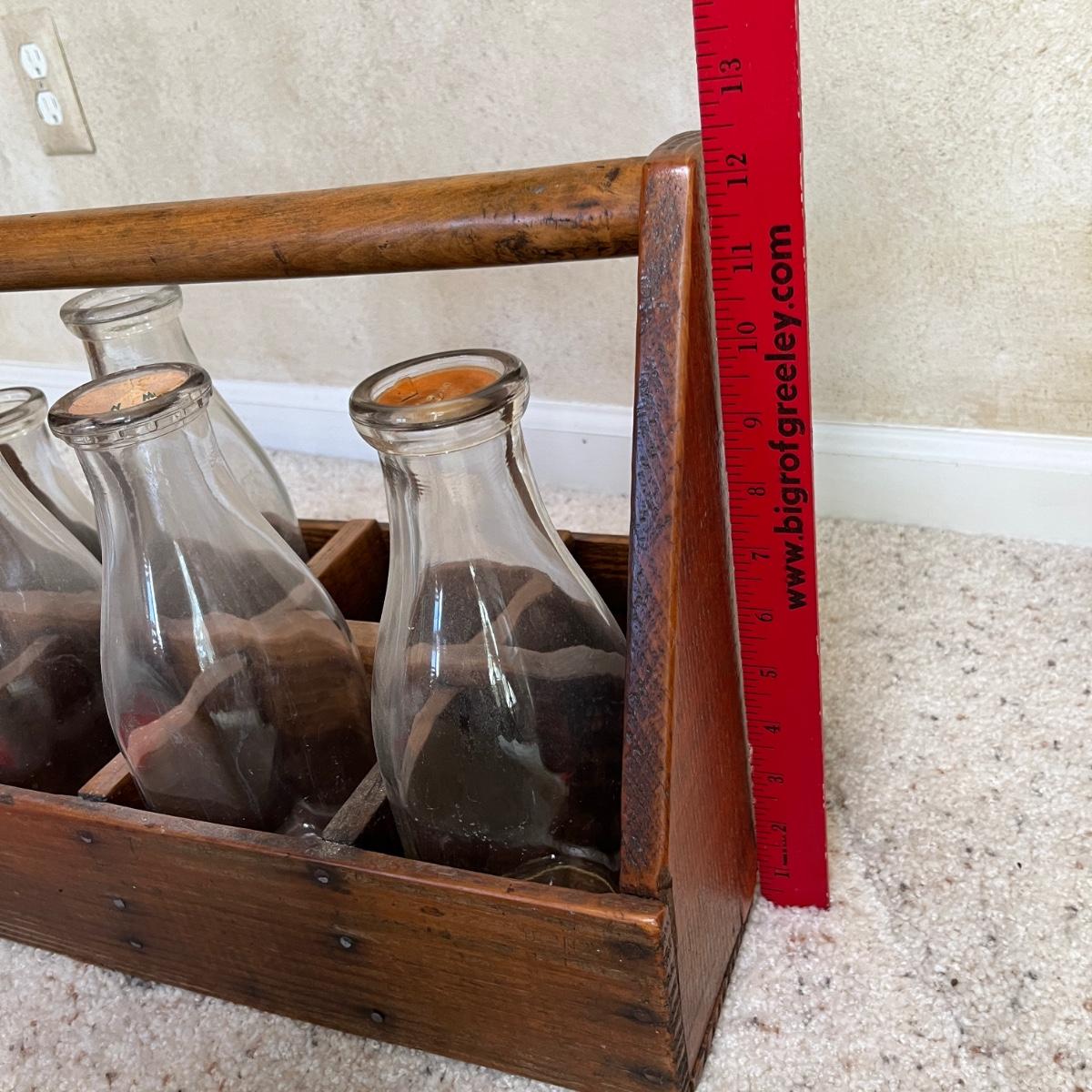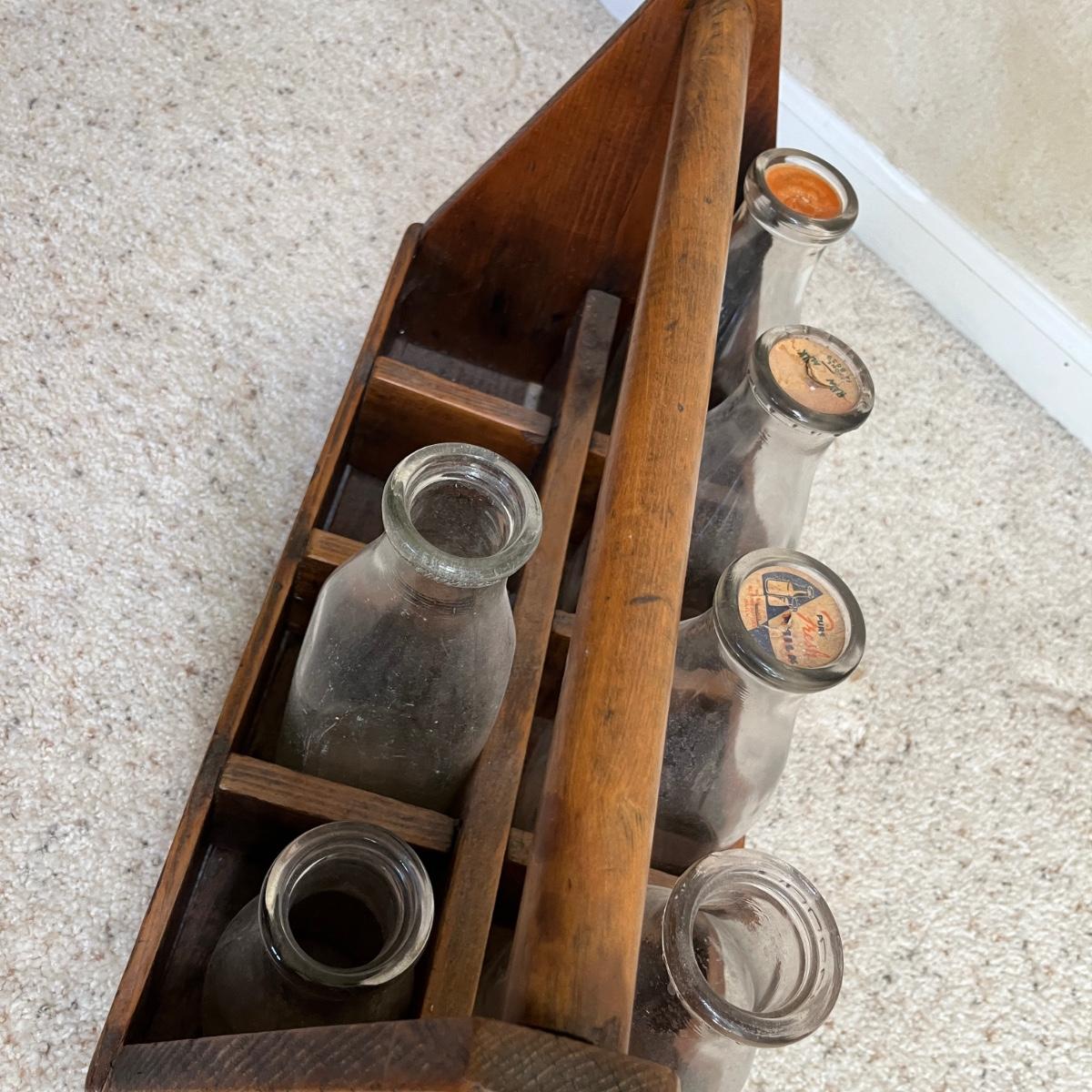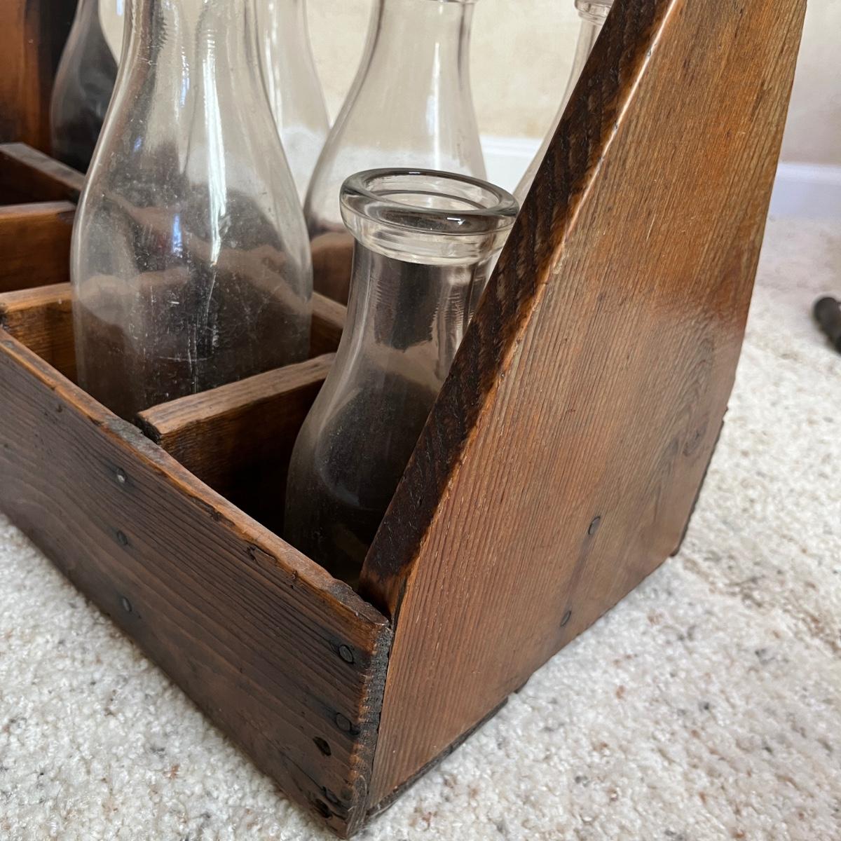 Antique Wood Milk carrier w/ bottles