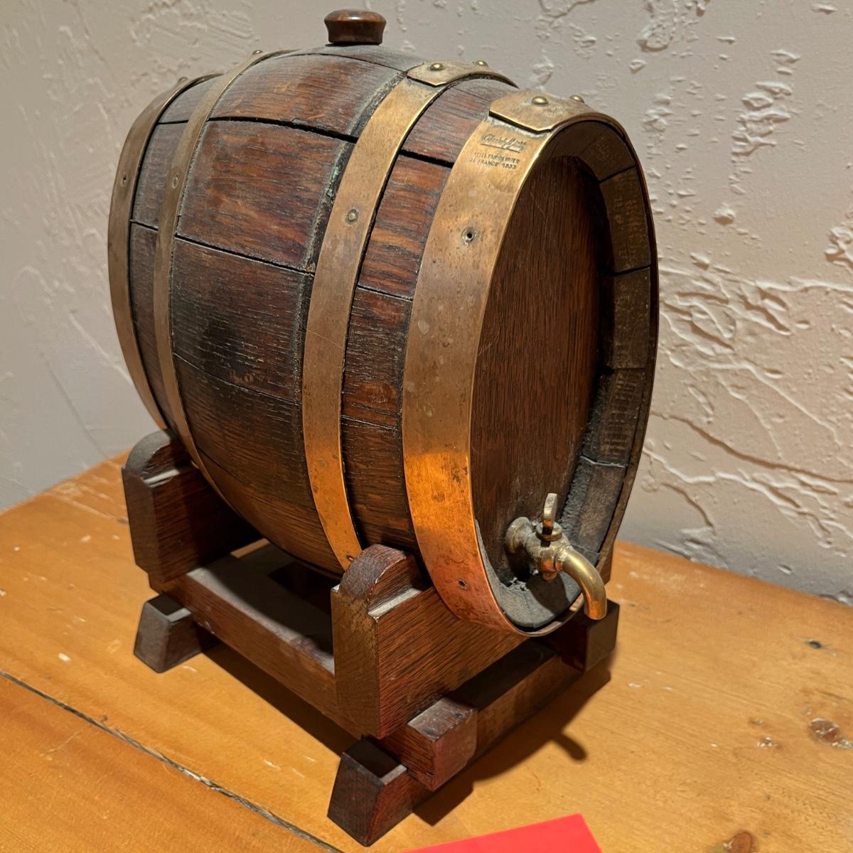Barrel decanter is quite old. One ring does slip off. Otherwise great shape!