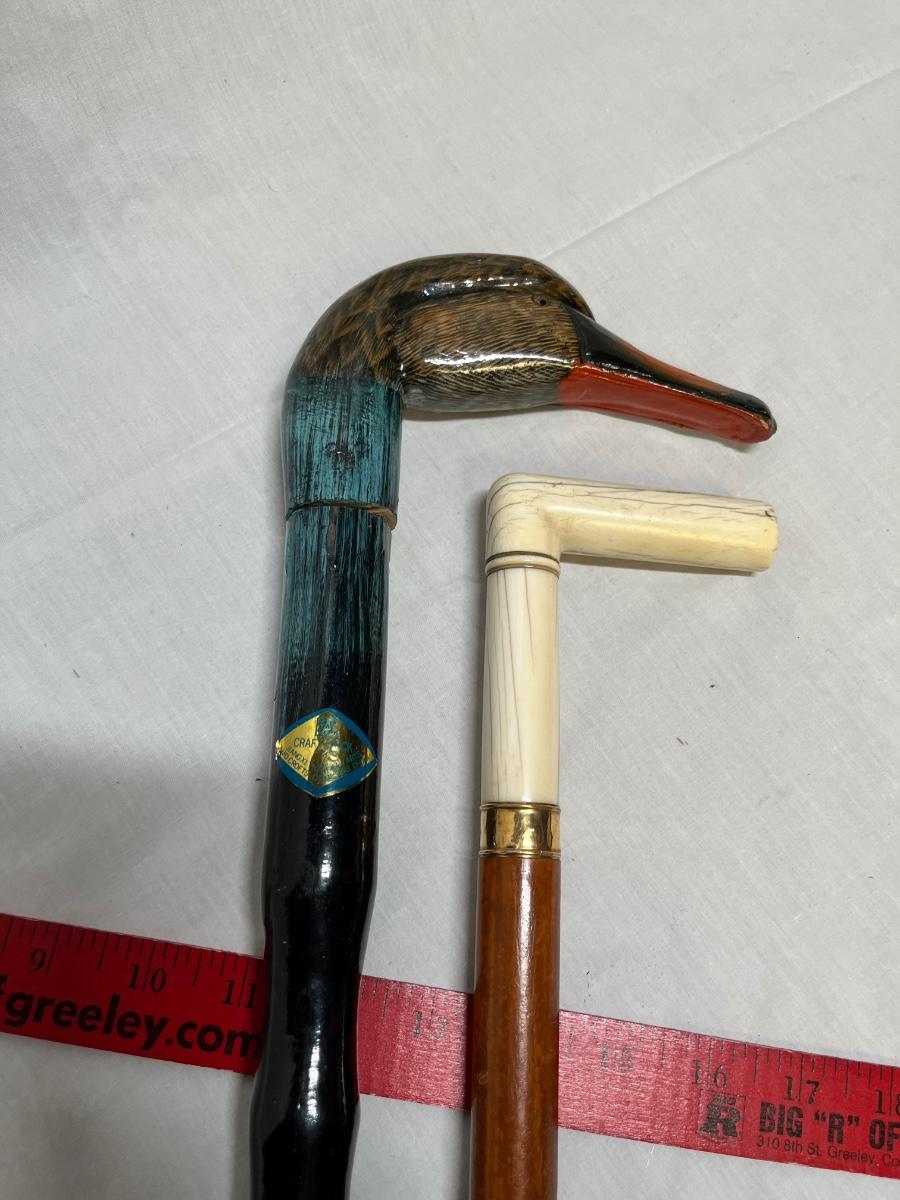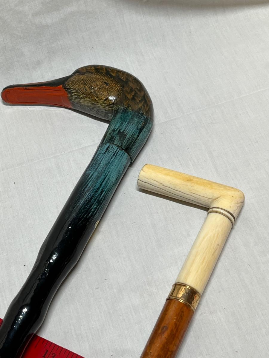 The duck is needing re-glued. Head falls off. The other handle is ivory.