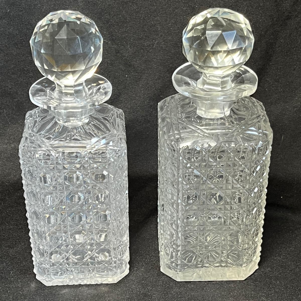 Matched pressed glass decanters