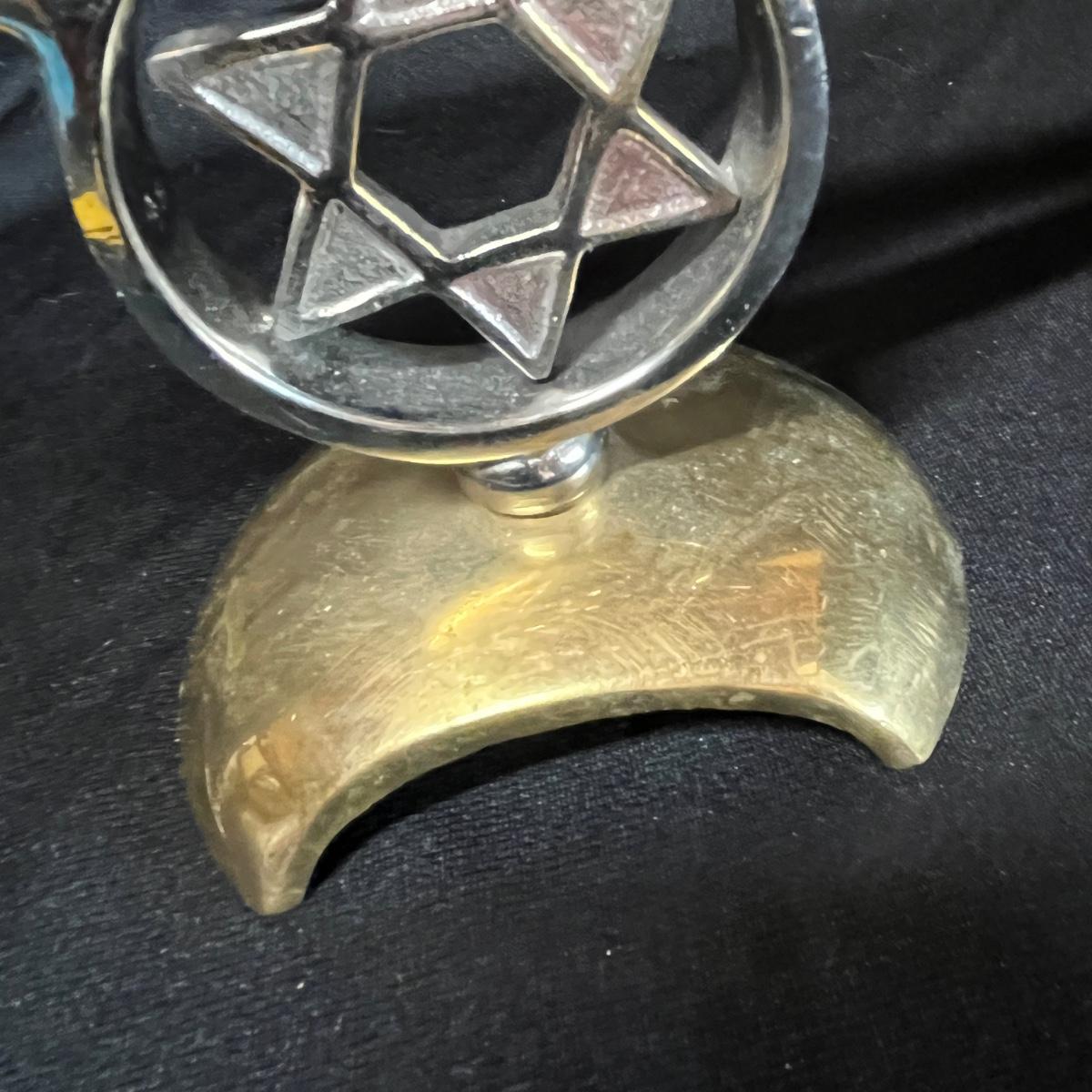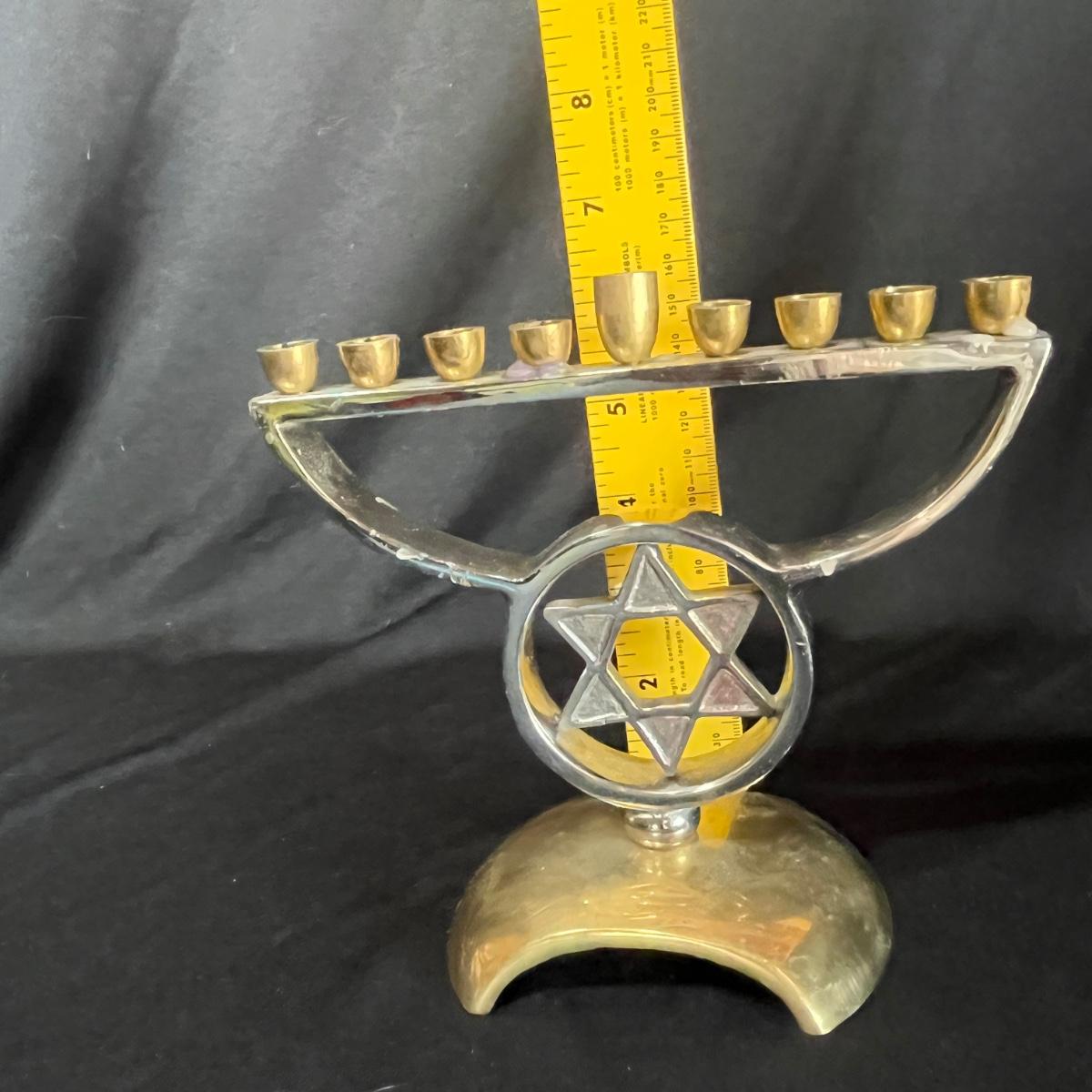 This is a really nice Jewish menorah! It is a smaller size. Quite heavy.
